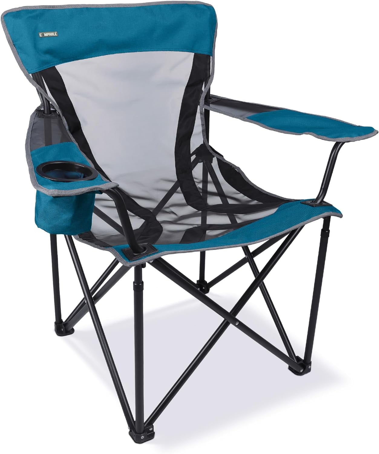 Durable Material: The camping chair features thick and sturdy steel pipes, innovative X-shaped reinforcement, the 16mm steel tube frame with powder coating creates a durable frame,and four heavy-duty steel frames Multi-scene Use: The folding camping chair weighs 7.83lbs. So you can take it everywhere with ease. It comes with a carrying bag for easy travel and to make storage easy.This adult camping chair is perfect for camping, picnics, fishing, hiking, travel, beaches, barbecues, concerts, and more Comfortable Mesh Back: Ergonomic mesh back and cushioned armrest make you feel good even if you sit in the chair for a long time.mesh has great strength, durability, and breathability. Tear resistant, breathable,easy to clean, suitable for long-term outdoor use Wide Size:22.9″ L x 22.9″ W x 36.2″H; Weight Capacity: 300 LBS. This oversized camping chair features more stability and security. You’re guaranteed a long lasting chair to enjoy outdoors all year round Foldable & Portable:Folding compact camping chair is easy to set up & fold in seconds and You’re ready to go! Packed Size 36.2″×5.9″×5.9″ one chair, easy to carry with carry bag.