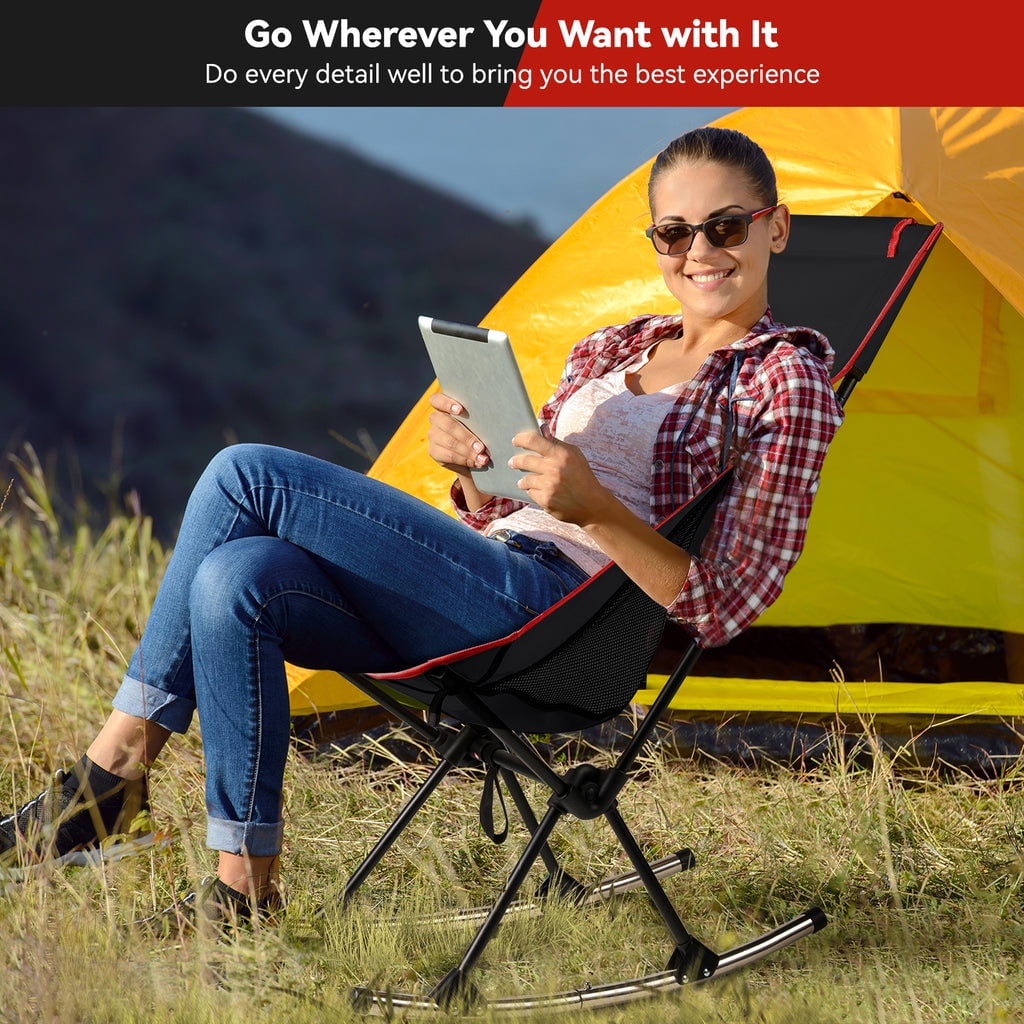 High Back Rocking Chair Folding Rocker Chair For Camping Hiking Gardening Travel Beach Picnic