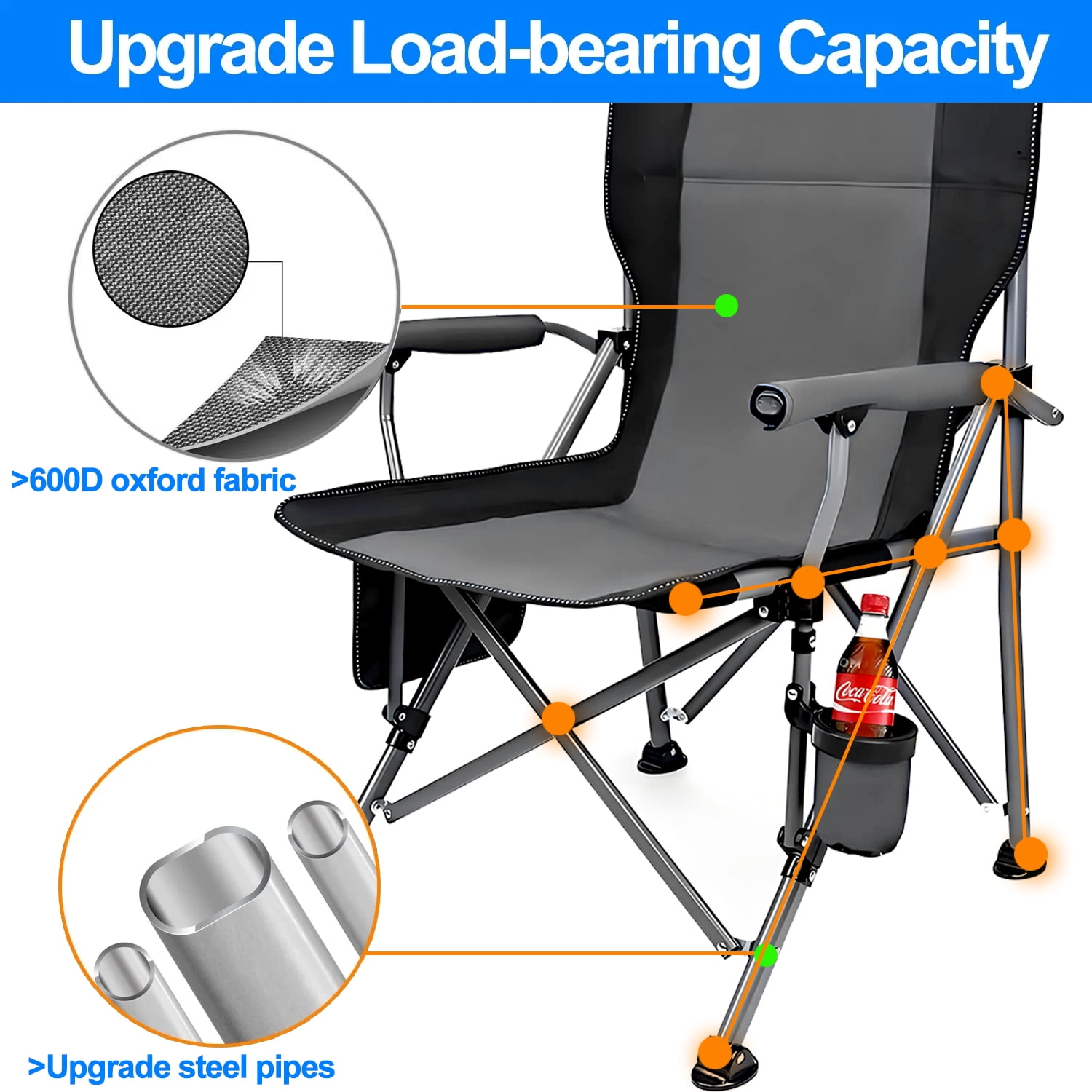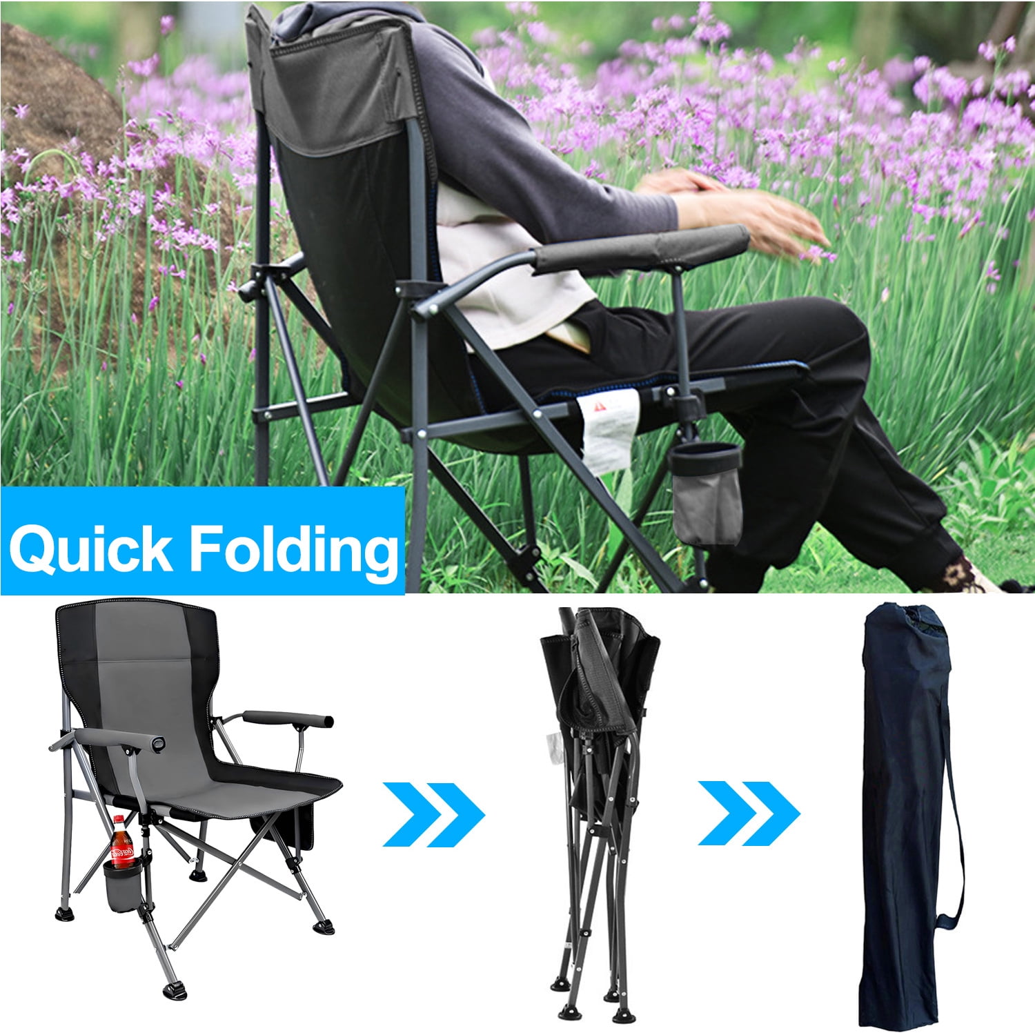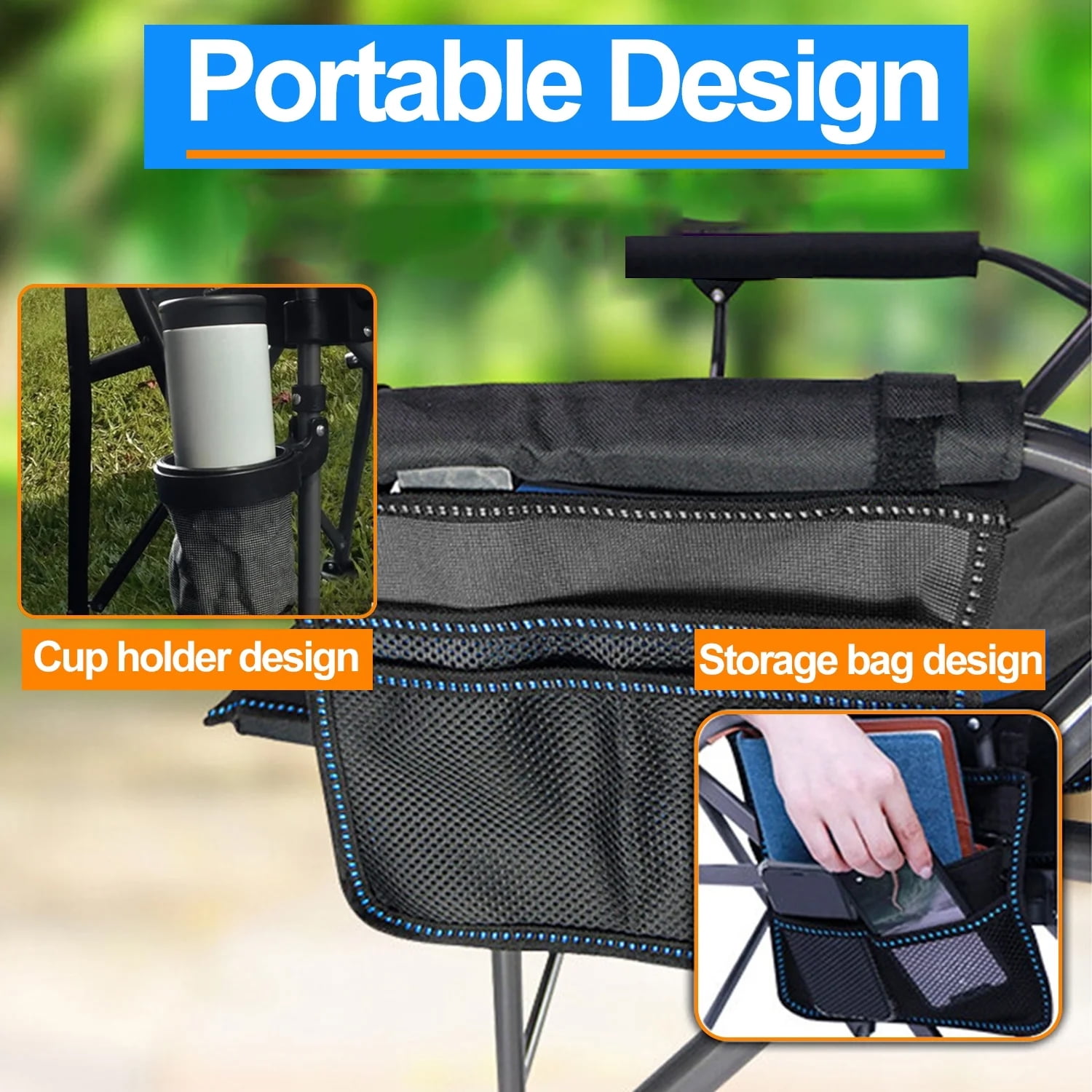 ????【Ultimate Comfort】: Our camping chair features an ergonomic padded high back and armrests, as well as cushioned seating, providing you with the ultimate comfort even for long hours of sitting ????【Sturdy Construction】: Crafted with a powder-coated steel tube frame and 600D padded oxford fabric, this rocking chair effortlessly supports up to 400lbs, ensuring unwavering stability and comfort. ????【Ground Versatility】: Adjustable foot pads unlike traditional options, it can be effortlessly set up on rocky, sandy, or uneven terrain, providing a seamless seating solution in seconds. ????【Extra Storage Space】: This beach chairs comes with accessory bag and one cup holder. Durable cup holder and armrests are at the ideal height, allowing you to relax. The side storage pocket can hold mobile phones and maps, A solid comfortable outdoor folding chairs meet your various needs. ????【Portable and Easy to Storage】: Folding Camping Chair without assembly. We will provide a carrying bag, The folded size: 7″ x 38.6″ and Weights only 9.3lbs. You can put it on the car to outside,portable outdoor chairs for adults will provide you with a relaxing and pleasant outdoor experience.