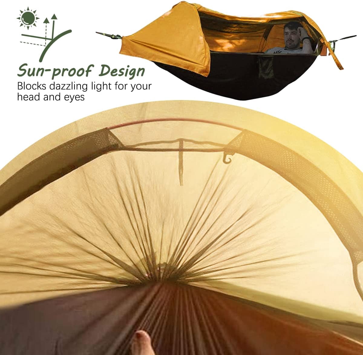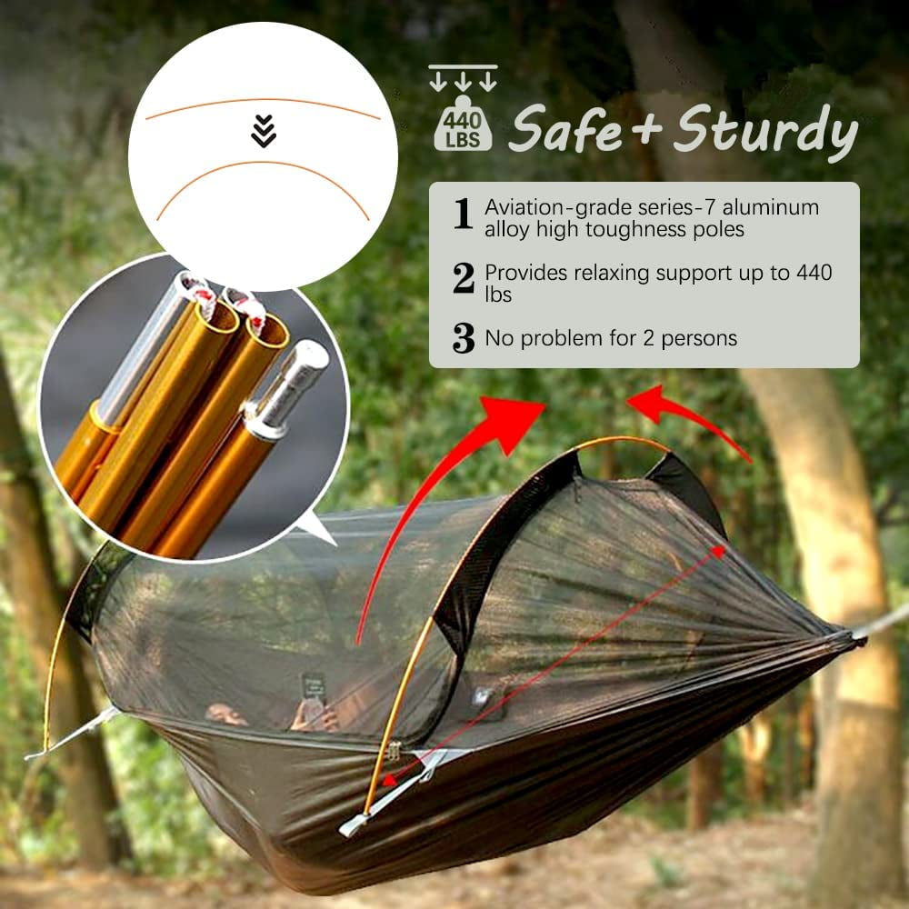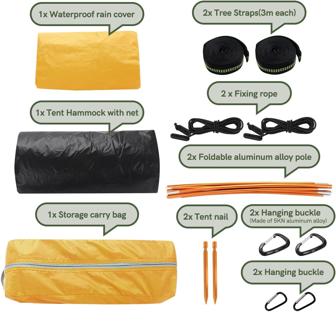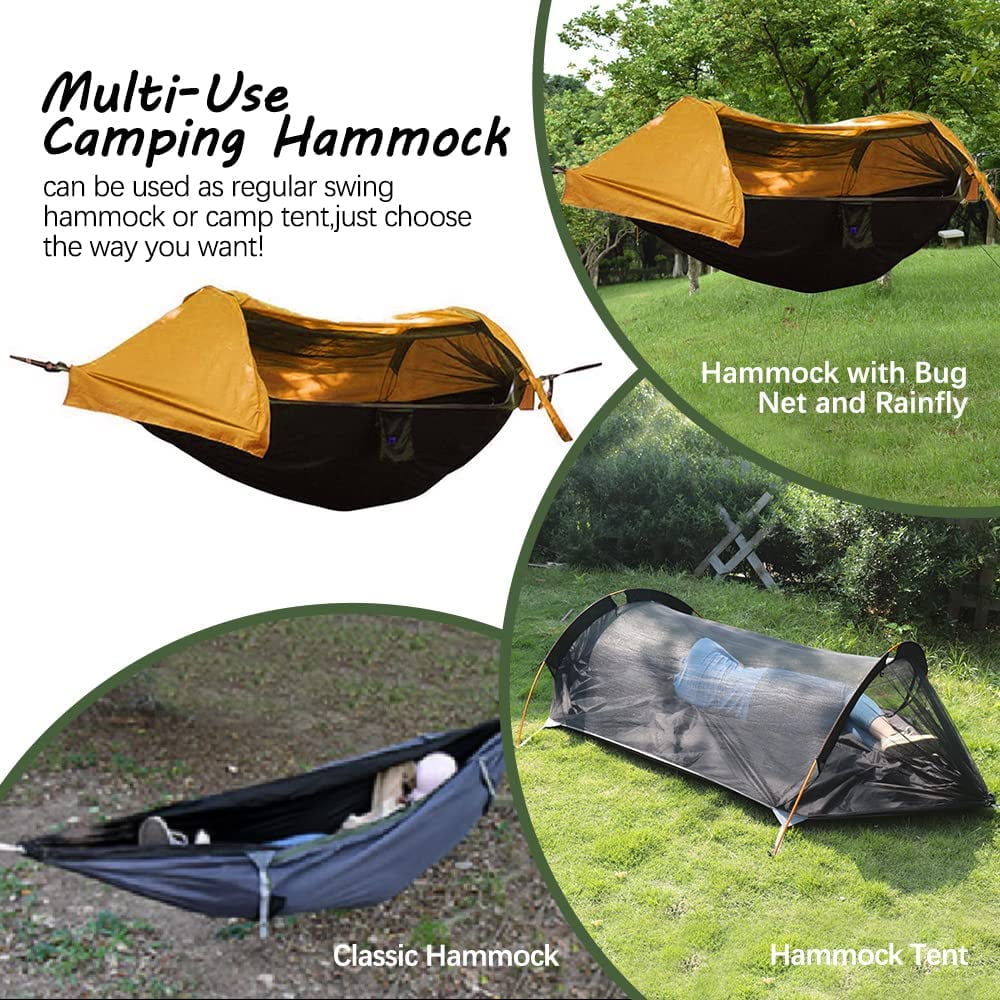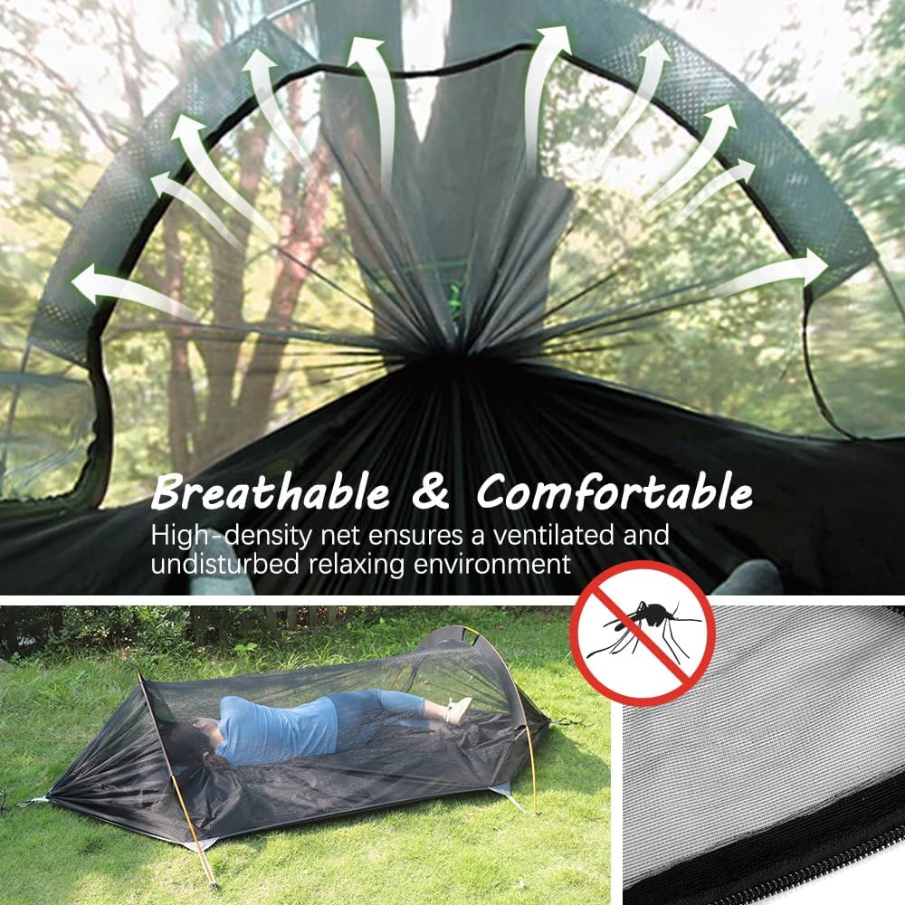 Camping Hammock with Mosquito Net and Rainfly Cover, 2 Person Portable Double Nylon Parachute Hammock Tent for Hiking Travel Backpacking Yard Beach