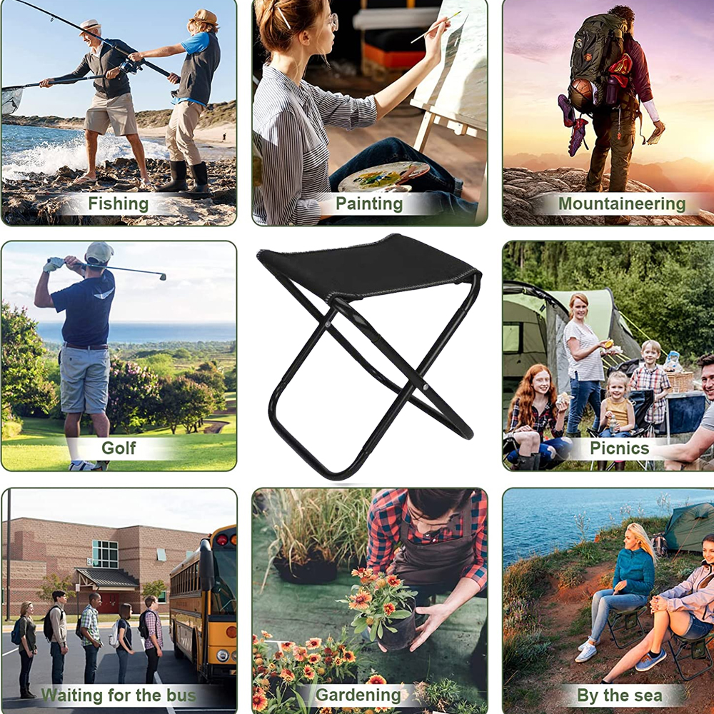 Camping Stool, Folding Samll Chair Portable Camp Stool for Camping Fishing Hiking Gardening and Beach, Camping Seat with Carry Bag,black,black,G81417