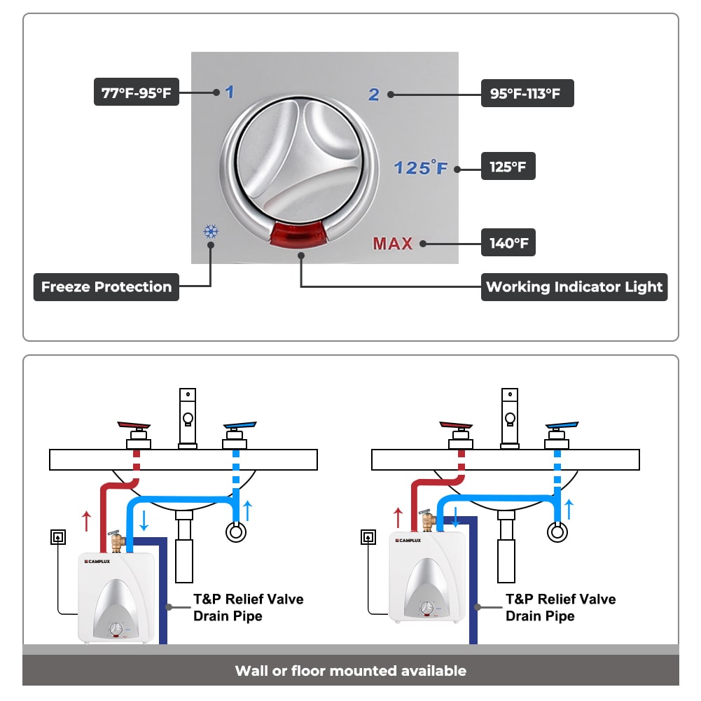 CAMPLUX is a brand that specializes in water heater, including indoor electric mini tank/tankless water heater, oudoor/indoor propane tankless water heater and RV gas water heater. Camplux has been constantly innovating water heater for over 10 years. Our indoor small electric tankless water heater ME10, is compact, instant, and easy to install. Why are known for their reliability and performance, making them a popular choice for home kitchens.