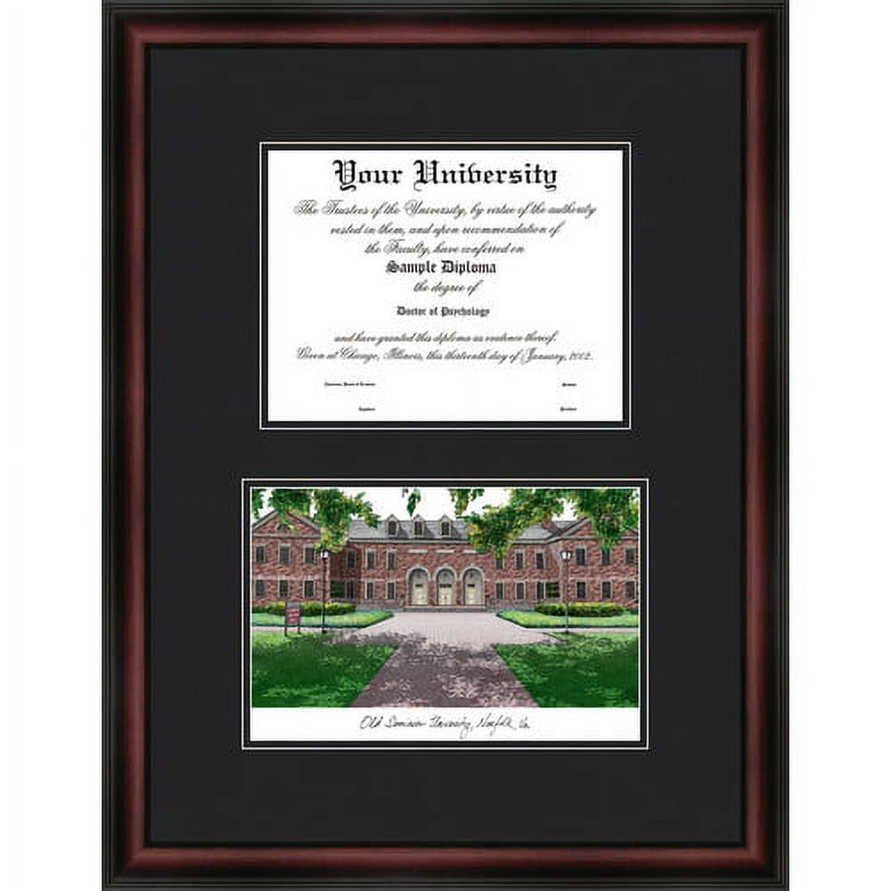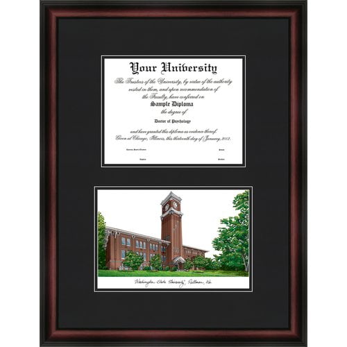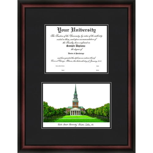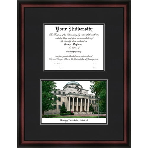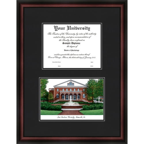 University of North Carolina, Charlotte 11″ x 14″ Diplomate Diploma Frame: Officially licensed collegiate product Makes a good gift for any current college graduates and alumni Handcrafted frame Made of wood With campus images lithograph Customizable to accommodate any size diploma Includes no-wire mounting hardware for hanging Mahogany diploma frame with museum-quality double-black matte Size: 11″ x 14″