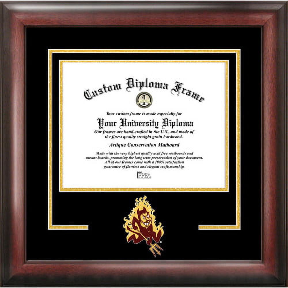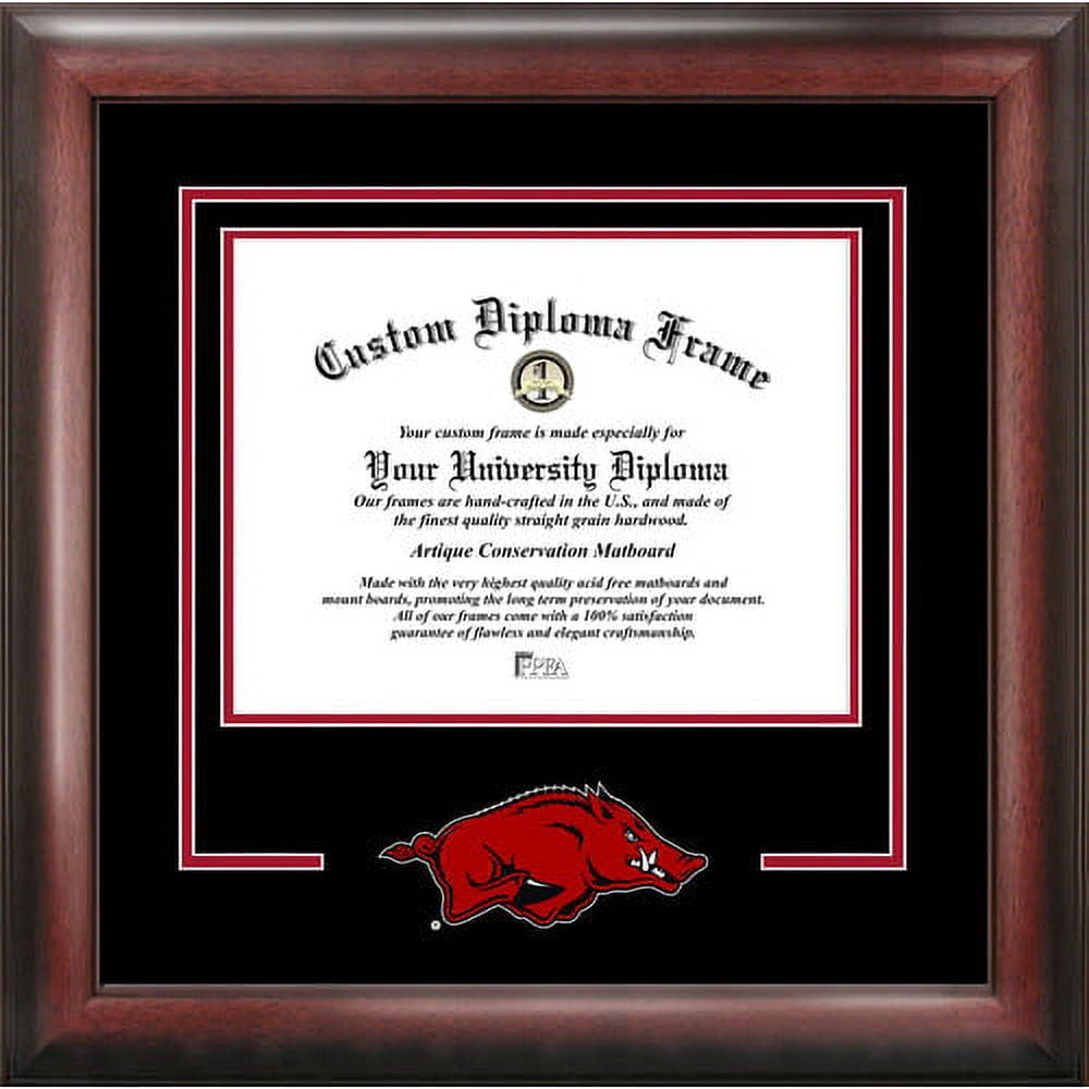 Campus Images has long been the leading resource for artistic renderings of recognizable college and university campus landmarks. Our merchandise selection has expanded to offer home, apparel, auto and office accessories. We carefully choose our items with you in mind . . . The incoming freshman at Duke, the wife of an alumnus from Penn State, or the graduating senior at Berkeley. Whatever the occasion, a reminder of those four- or more- important years is always the perfect gift! Our selection has grown, but our goal is the same . . . to serve our customers. Please let us know if there is anyway that we can better serve you. Diploma opening in satin mahogany frame with ized mat with school’s logo or mascot. The mat board and the mount board are acid and lignin-free, and are PH neutral to help preserve and protect your diploma. Made for your diploma. Everything you need to insert your document and hang the frame is included. Features The matting is in school colors Original art from which our images are reproduced, is hand rendered pen and ink, expertly colored by professional illustratorsSpecifications Weight: 7 lbs – SKU: CMPS2742