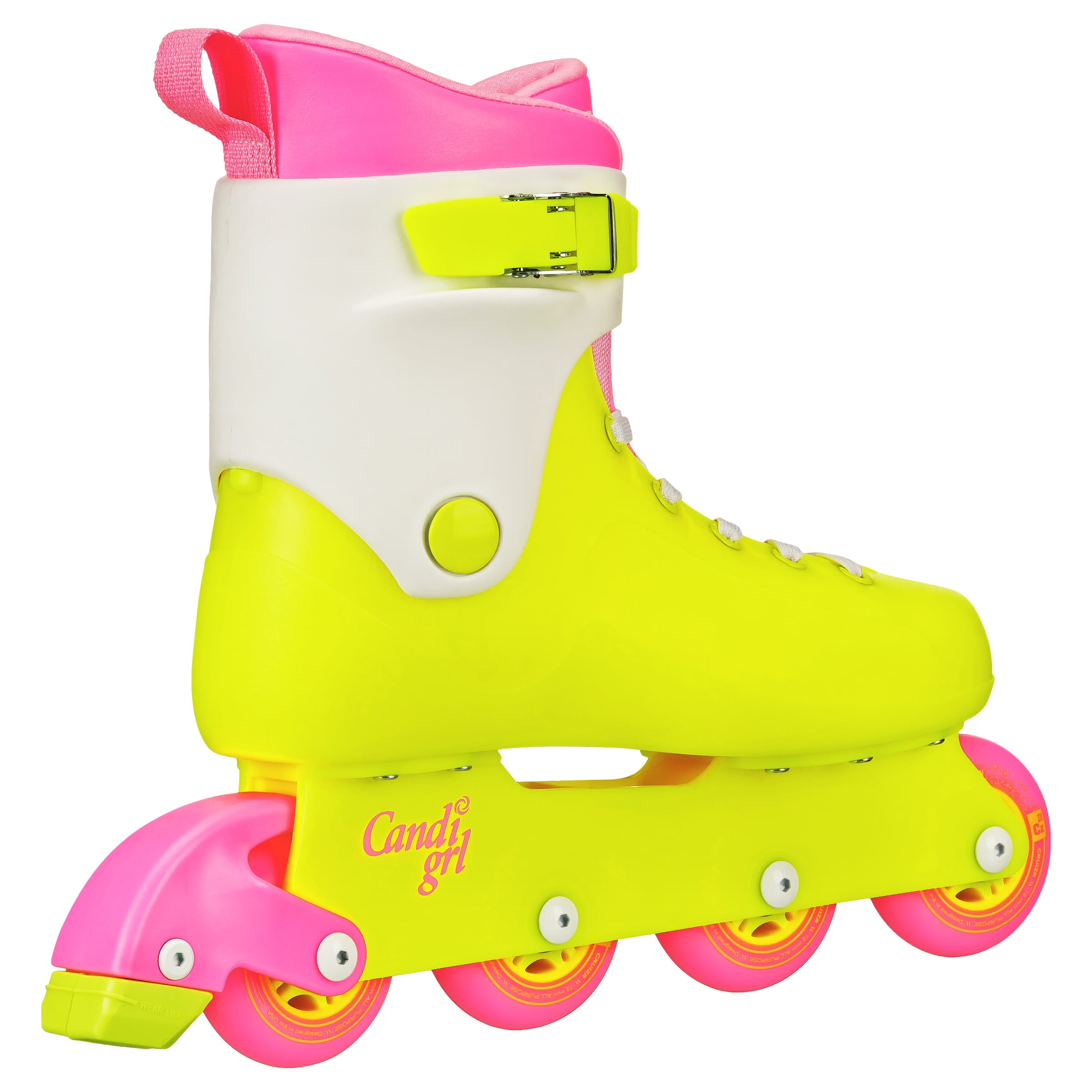 Candi Grl South Beach Inline Skates Roller Derby Candi Grl South Beach Inline Skates, High Impact Polymer Shell with Comfort Padded Liner, 72mm Indoor/Outdoor Wheels High Impact Polymer Outer Shell: Provides durability and protection for long-lasting use Comfort Padded Inner Liner: Enhances comfort during skating sessions, ensuring a snug and comfortable fit Kemistry 72mm Indoor/Outdoor Fitness Wheels: Designed for versatile skating on various surfaces, offering a smooth ride both indoors and outdoors High Impact Polymer Chassis: Delivers stability and support, contributing to a reliable and secure skating experience