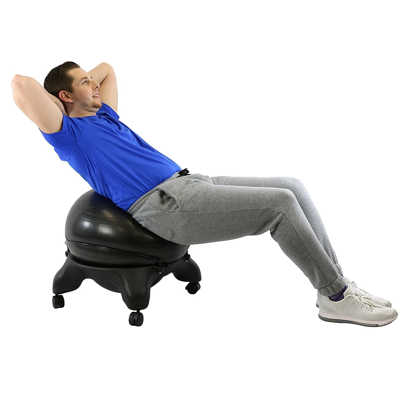 Versatile exercise ball chair holds a 50 cm ball (included) securely in place Use as a chair without back, or use as an inflatable exercise dome Plastic – Mobile – No Back – Adult Size – with 20″ Ball