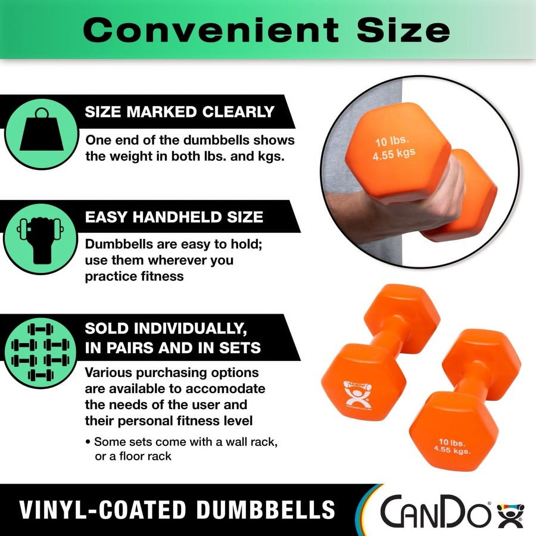 CanDo Standard 20 Piece Vinyl Coated Iron Dumbbell Free Weight Set, Multicolor