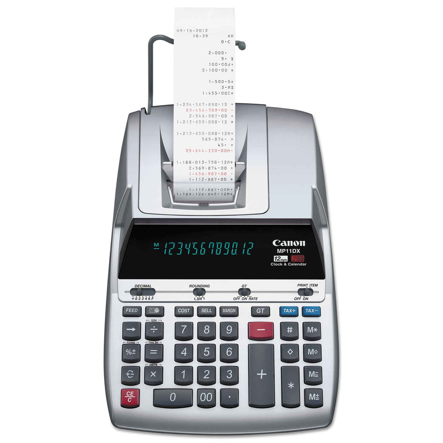 Canon MP11DX 12-Digit Ribbon Printing Calculator, Black/Red Print, 3.7 Lines/Sec