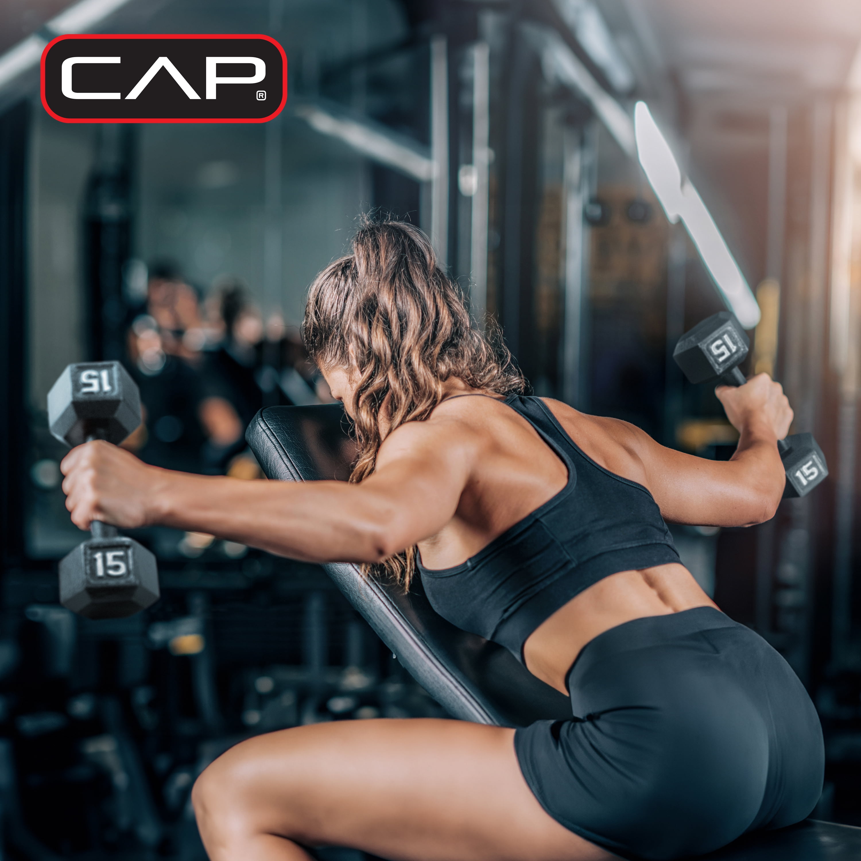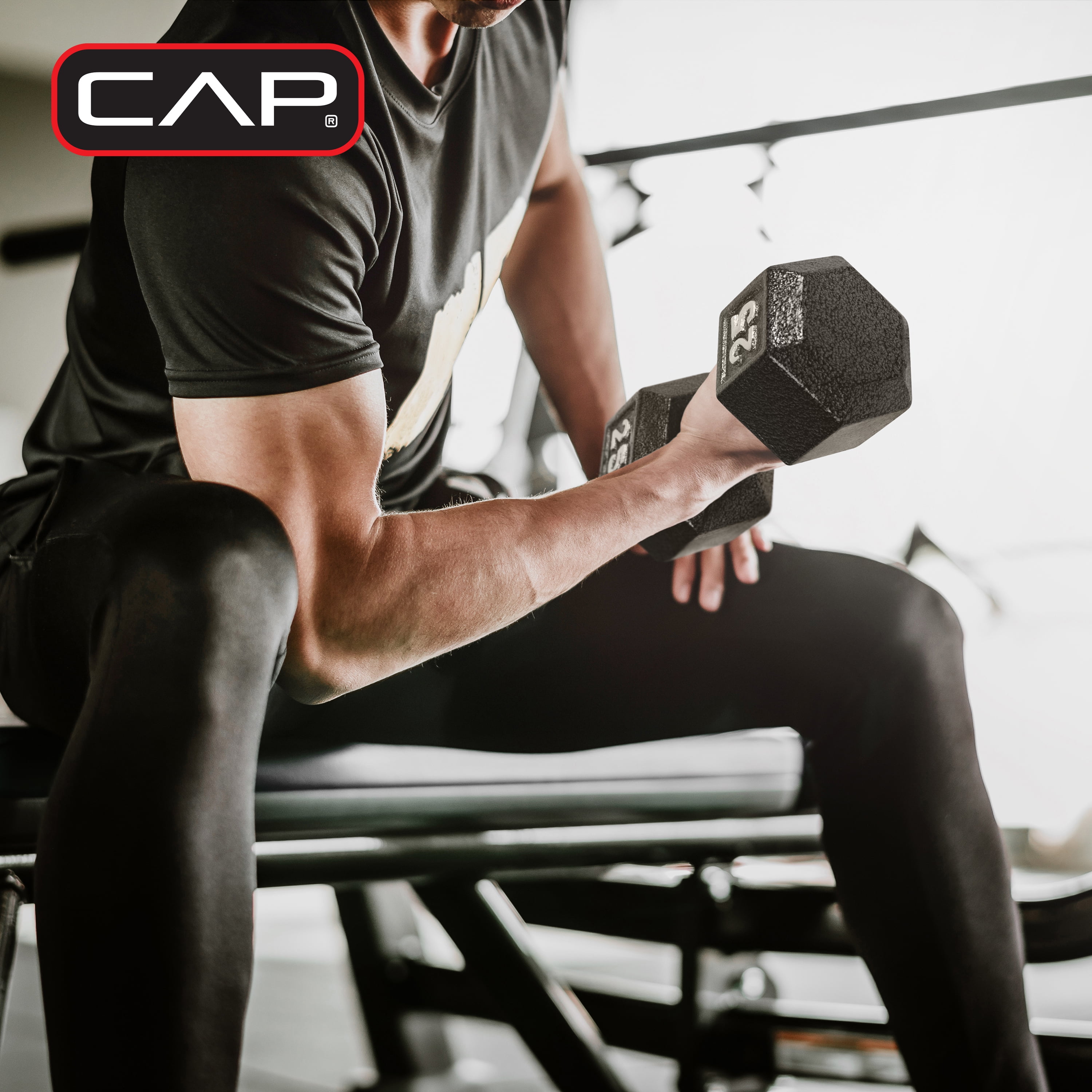 No home gym is complete without a variety of dumbbells and the CAP 100-pound Cast Iron Hex Dumbbell Weight Set with Rack gets you what you need. This set comes with a variety of weights and can be used for both upper and lower body while targeting specific muscle groups. The CAP Cast Iron Hex Dumbbells have a medium depth knurling, which provides essential grip and security during use, and feature a hexagonal shape that prevents rolling and allows for easy storage. Included in the set is a 5-pound dumbbell pair, a 10-pound dumbbell pair, a 15-pound dumbbell pair, a 20-pound dumbbell pair, and a 20-inch, A-frame, dumbbell rack for easy storage. Lift, gain, and repeat with the CAP 100-pound Cast Iron Hex Dumbbell Weight Set with Rack.