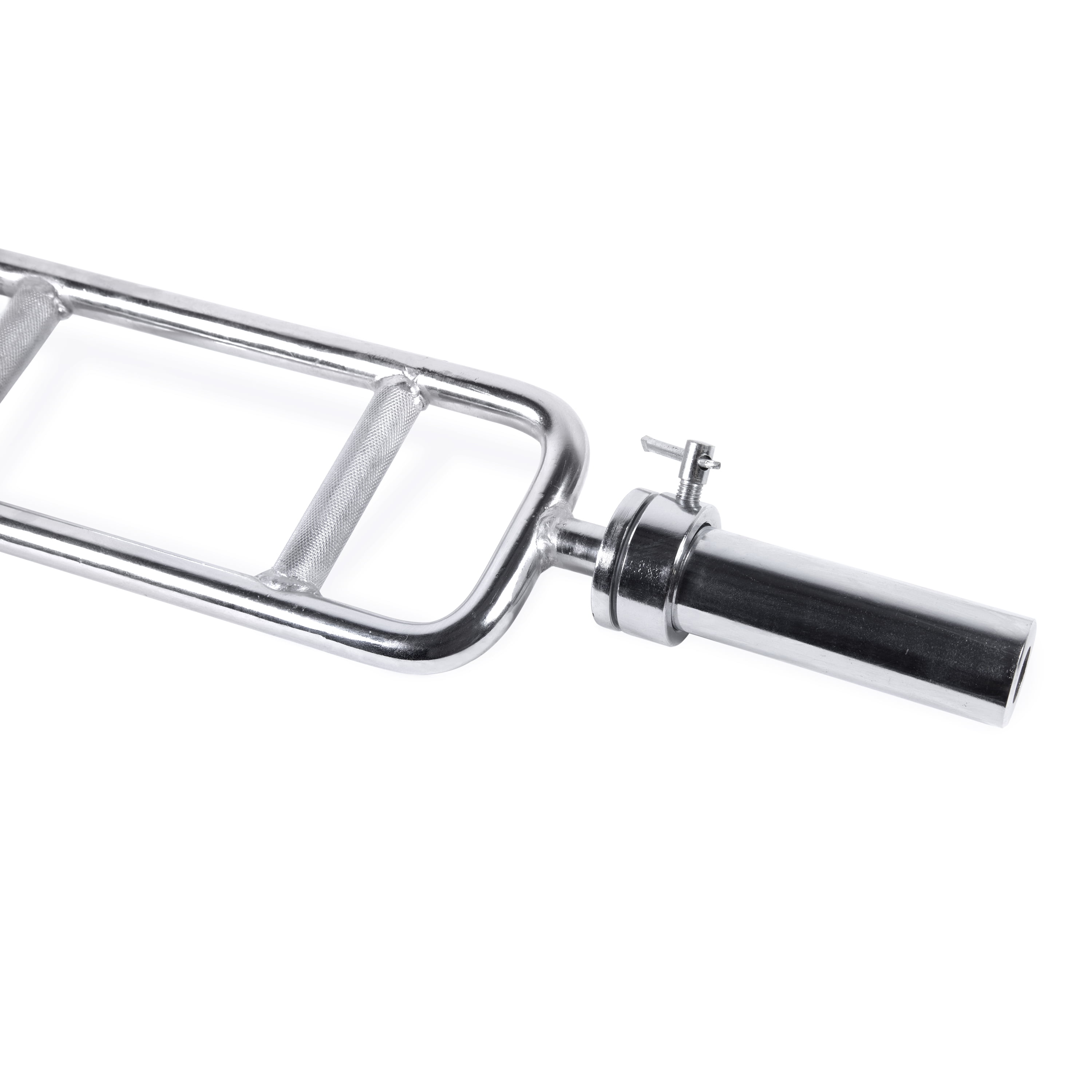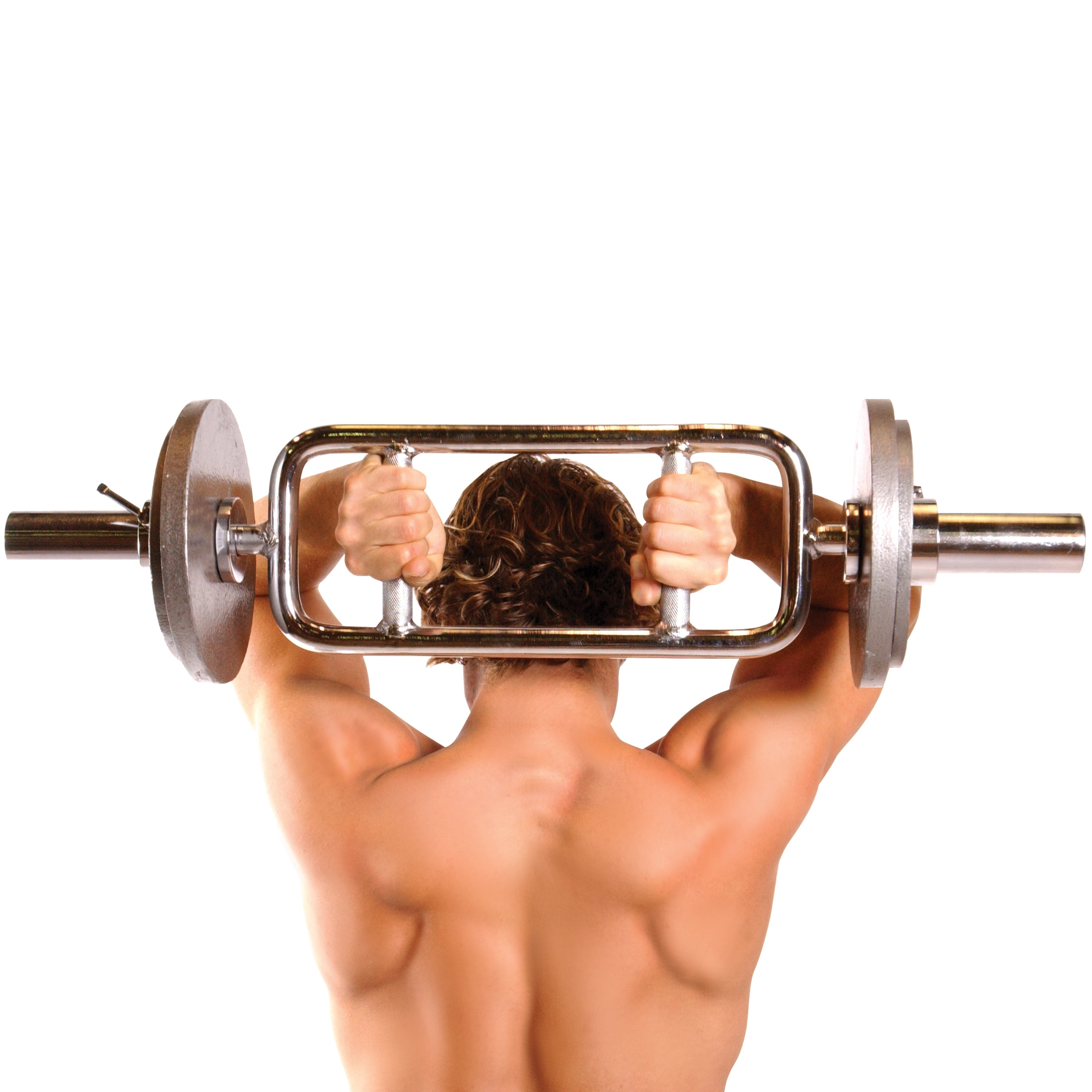 Strengthen your upper body and target the triceps with this CAP Barbell Olympic Triceps Bar. It is designed with ergonomic handgrips and revolving sleeves that allow unrestricted movement during lifts. This CAP Barbell workout bar is specifically engineered for optimal concentration of the triceps without discomfort to your elbows, wrists or forearms. It has sturdy solid steel construction and a chrome finish to provide a durable triceps bar with long-lasting performance. The medium-depth knurling on the hand grips offers a tight, non-slip surface. This 34-inch barbell has a maximum weight capacity of 200 pounds. Olympic plates (with a 2-inch center hole) will fit on the ends of the bar.