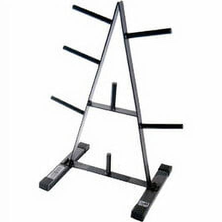 Save precious floor space in your home gym with the CAP Barbell Standard Weight Plate Rack. This plate rack is made of durable steel and coated in a black powder finish so it can store weights for years to come. The A-frame style with 7 plate posts provides easy and convenient storage for all your standard 1-inch weight plates. The CAP Barbell Weight Plate Rack has a design that combines durability with compact size and is designed to fit easily in small rooms. The rubber end caps protect your floors, making this plate rack economical. Whether you’re an experienced or a novice weightlifter, the CAP Barbell Weight Rack will help you make the most of your training. Efficient storage is an important part of keeping your home gyms exercise equipment organized. This rack has a maximum weight capacity of 500-pounds.
