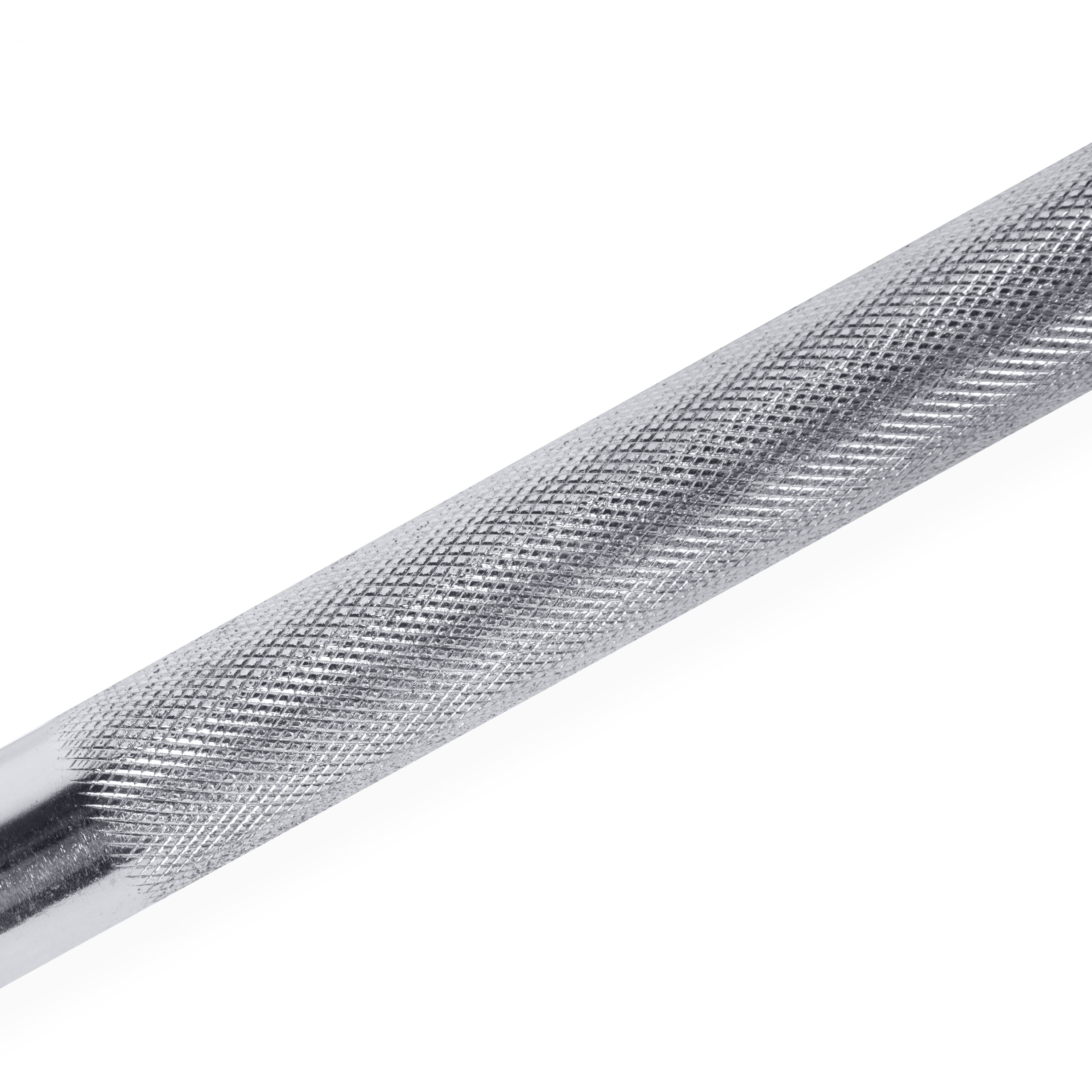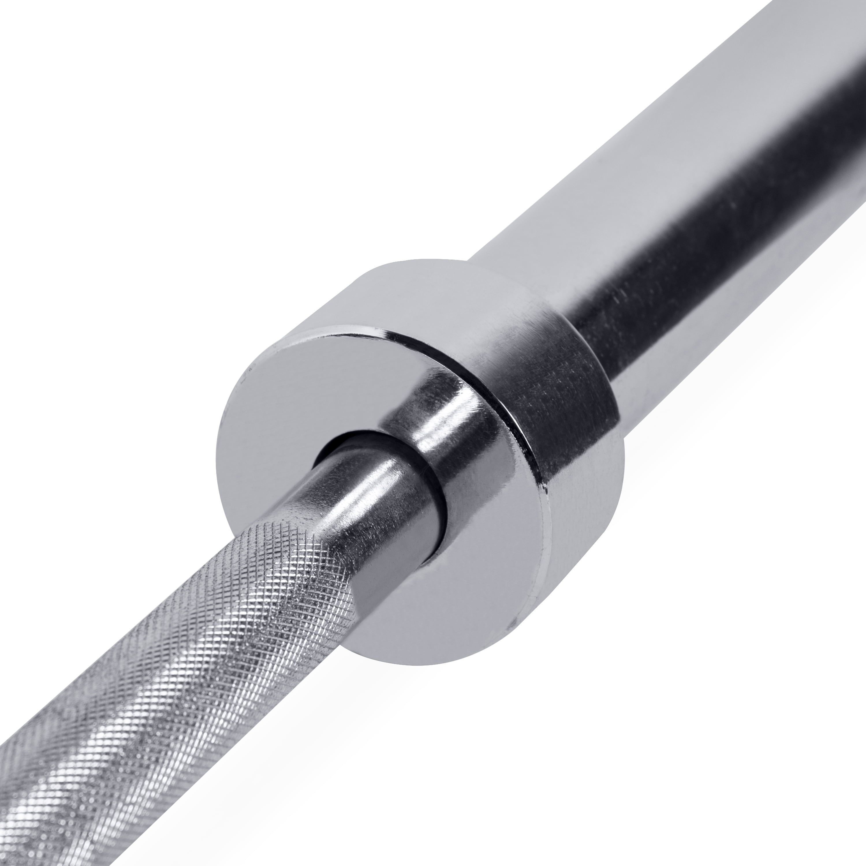 CAP Barbell Solid Chrome Olympic Weight Bar, 5Ft.: Made from high-quality solid steel and coated in a chrome finish for durable, long-lasting performance. Bar length is 60-inches and has a 9.75-inch loadable sleeve length. Medium diamond knurling for a tight, non-slip grip when lifting weights. Rotating sleeves reduce pressure on wrists and forearms. Get a full-body workout or target specific muscle groups. Perform a wide variety of exercises including bench presses, squats, and everything in between. Accommodates Olympic weights (with 2-inch center hole). Maximum weight capacity of 500-pounds.