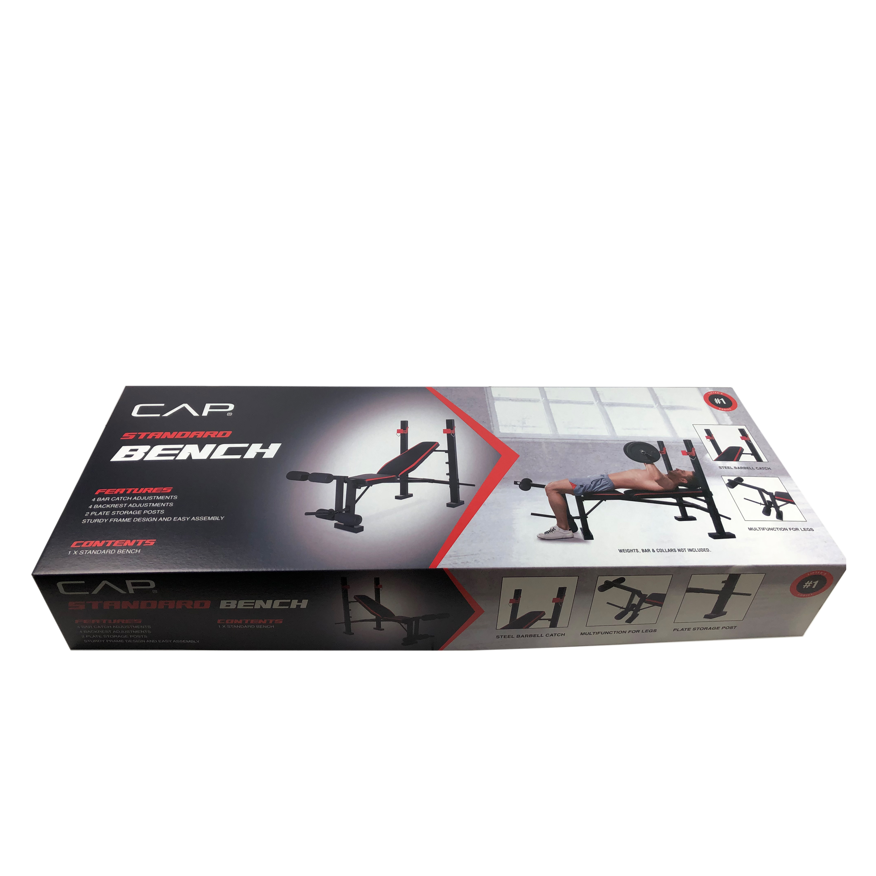 The CAP Standard Weight Bench with Leg Press is the ultimate weight bench for the beginner to intermediate weightlifter. It includes a four-position back pad for chest press and incline chest press exercises and full leg developer to assist you in targeting hamstrings, quads, and glutes. Made of durable 14-Gauge, heavy-duty steel tube frame with a powder coated finish. Designed with high density upholstery and contoured foam roller ankle pads for comfort and support during workouts. The CAP Standard Weight Bench with Leg Press is the ideal bench for your home gym. It’s compact and durable, looks good and will get you on your way to meeting your strength training goals. This bench has a 500-pound weight load capacity, including the user.