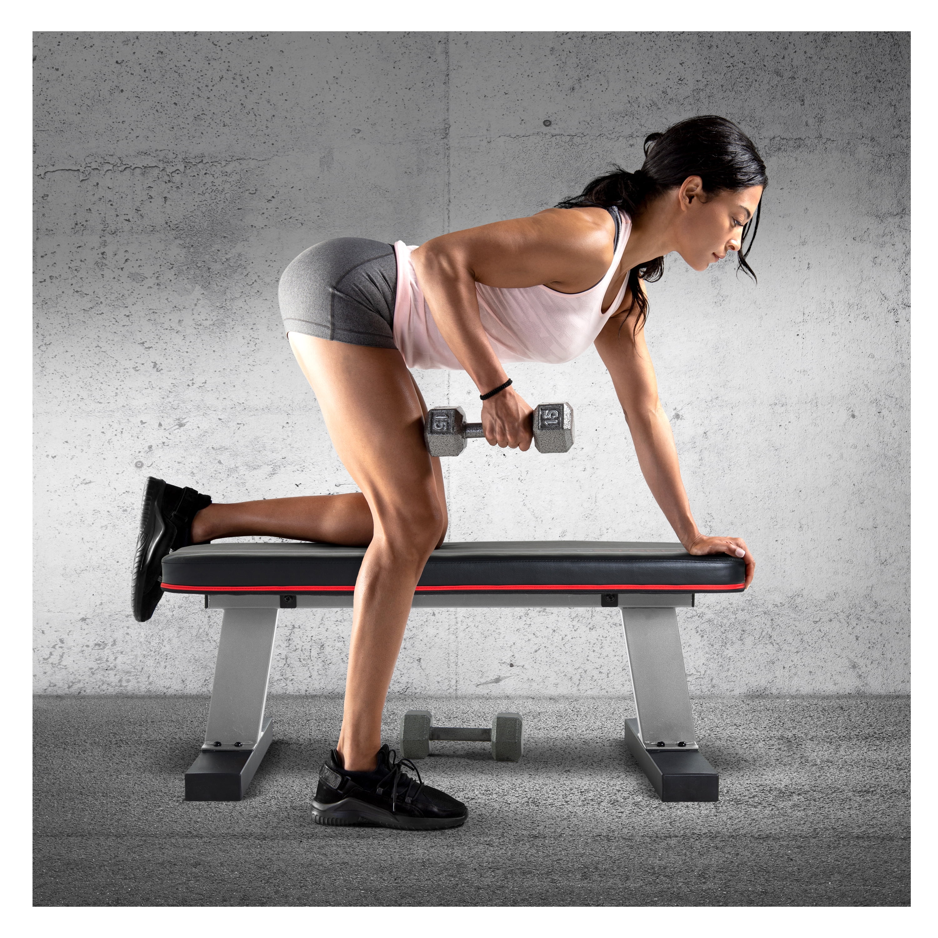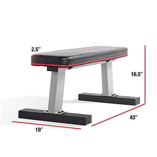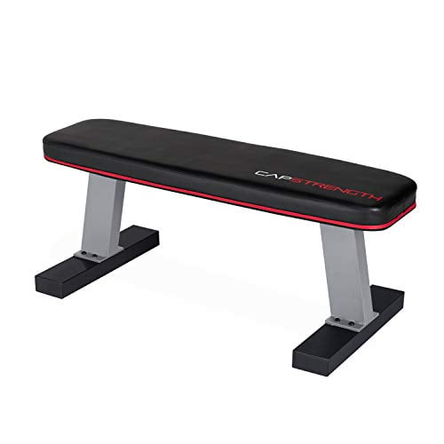 Get a full body workout by incorporating this bench into your fitness routine Use this flat weight bench to target the upper body, lower body, and core Built with 2 mm 3 x 1.5-inch steel tubing allows this bench to withstand heavy loads and grueling workouts Recommended weight capacity is 600 pounds Bench is tested based on ASTM standard to hold up to 1,250 pounds Double stitched boxed pad is comfortable yet firm utilizing new foam material and CARB compliant plywood Durable powder coat finish and zinc hardware provide exceptional maintenance- free durability Assembled dimensions are 43″ length x 19″ width x 17″ height Trust experience. CAP has been in pioneer in fitness with over 30 years experience and locations worldwide.
