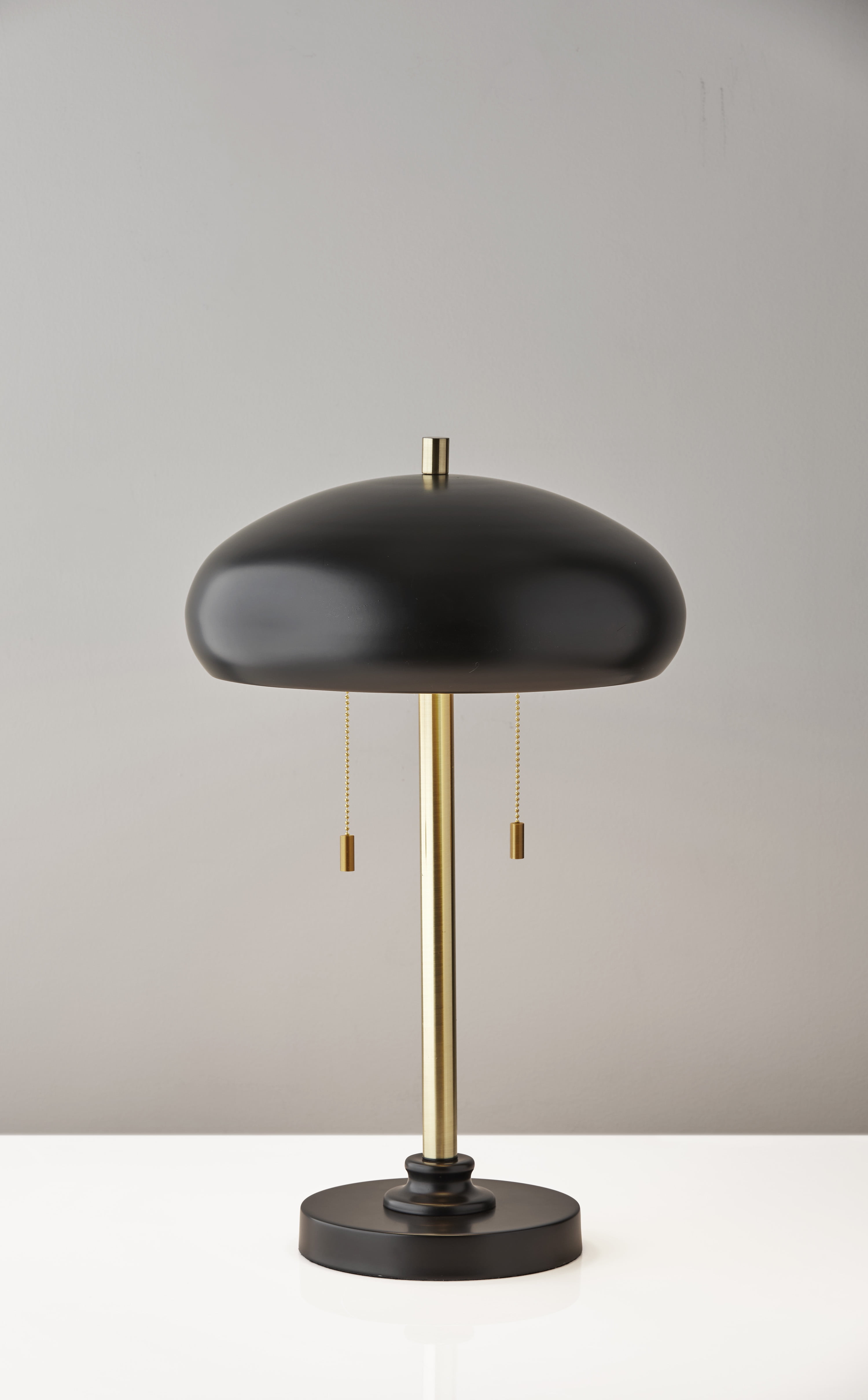 Accent Desk Lamp: Add a mid-century accent to your bedroom, living room or office space with the Cap Table Lamp. A black metal dome shade has a gold painted inside for optimal light reflection. Functional Design: Two sockets each hold a standard 40W bulb, each controlled by its own pull chain switch providing 2 brightness settings. Black and antique brass finishes are mixed to create a versatile, modern look. Contemporary Decor Lamp: Elevate your home decor with mid-century modern lighting fixtures from Adesso. Our vast array of lighting options is sure to bring the perfect style and ambience into your home. Versatile Use: Add a functional yet stylish accent to any surface in your home with Adesso Table Lamps. This table light is ideal for nightstands, console tables, side tables or desktop task lighting. Product Specifications: Black & antique brass finish, double sockets – double the light, double pull chain switch offering 2 light settings, this lighting product is ETL listed, meaning that it has been tested and approved to meet the government-regulated safety standards for the USA.