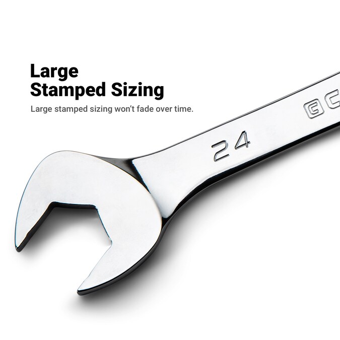 • V-shaped open end with anti-slip groove grabs securely onto four sides of the fastener, giving you more leverage