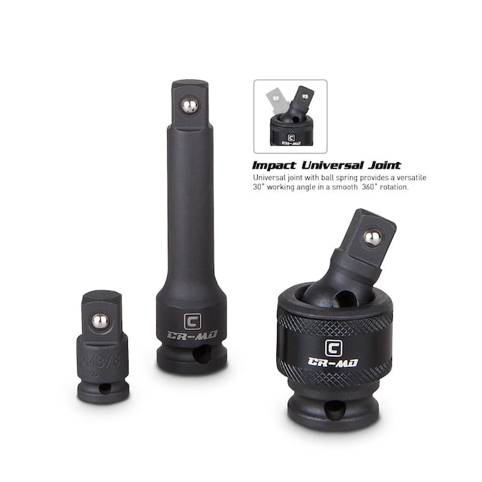 The Capri Tools 3/8-in Drive Master Impact Socket Set is a complete collection of most frequently used sockets and accessories. Organized by size in a specially made impact-resistant tool case, the impact sockets and accessories stay where they are as you carry them around. We use premium Chrome Molybdenum steel tempered with our proprietary heat treatment process to make these impact sockets and accessories. They are durable and specifically made to withstand high torque from power tools. Each item is expertly coated with manganese phosphate, the preferred coating in military and aerospace, which offers superior protection and corrosion resistance compared to black oxide coating on other impact sockets. The 6-point WaveDrive design grips fasteners more tightly than traditional design, preventing fastener rounding and giving you more leverage. Meets and exceeds ASME B107.110 standards. This master set includes: (20) 3/8-in drive standard impact sockets: 8, 9, 10, 11, 12, 13, 14, 15, 16, 17, 18, 19 mm, 5/16, 3/8, 7/16, 1/2, 9/16, 5/8, 11/16, 3/4-in; (20) 3/8-in drive deep impact socket: 8, 9, 10, 11, 12, 13, 14, 15, 16, 17, 18, 19 mm, 5/16, 3/8, 7/16, 1/2, 9/16, 5/8, 11/16, 3/4-in; (3) 3/8-in drive impact extension bars: 3, 6, 10-in; (1) 1/4 to 3/8-in drive impact adapter; (1) 3/8 to 1/4-in drive impact reducer; (1) 3/8 to 1/2-in drive impact adapter; (1) 1/2 to 3/8-in drive impact reducer; (1) 3/8-in drive impact universal joint.