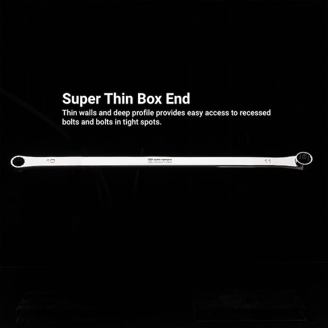 - Super thin box end with thin walls and deep profile provides easy access to recessed bolts and bolts in tight spots. 0 degree offset allows for a secure fit onto fasteners, giving you higher torque and easier swing
