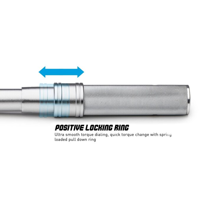 - Dual scale 10-ft lb to 80-ft lb and 14-Nm to 108-Nm with ultra-smooth torque dialing and quick torque change with spring-loaded pull-down ring