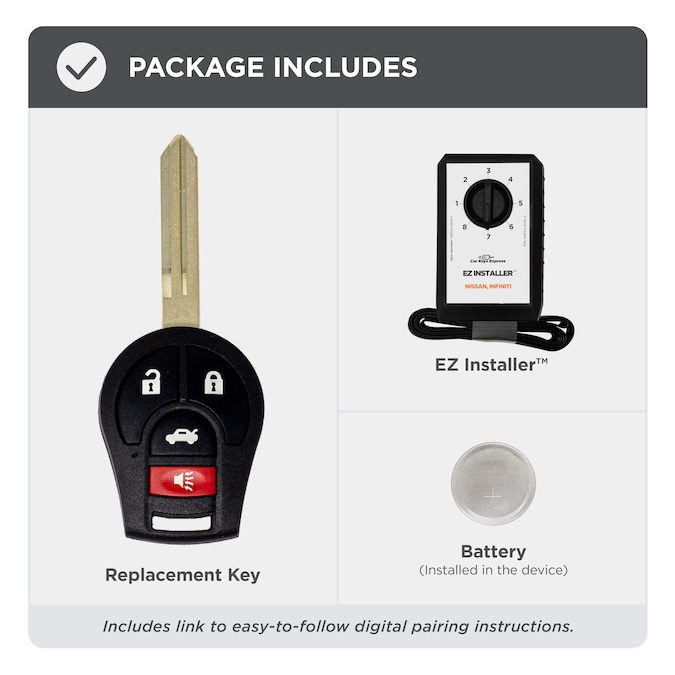 Simple key is a new way for consumers to easily replace modern car keys. The consumer-friendly key replacement kit includes a remote combo key and pairing device. Key blade can be cut at most hardware stores, car dealers, or automotive locksmiths. Then, use the pairing device to pair the key to the vehicle in just a few minutes.