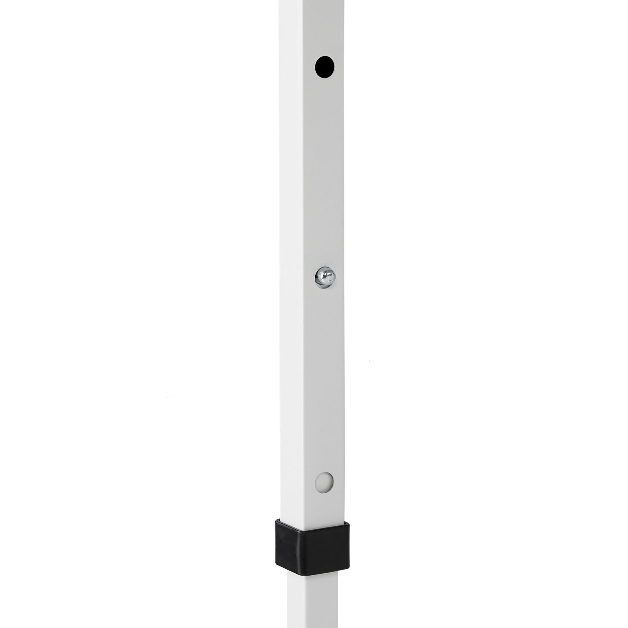 Fully assembled slant leg pop up canopy with cathedral style, white powder coated steel frame for maximum head room Sturdy, high grade steel frame with white powder coated finish to prevent rust, corrosion, peeling, or chipping Soft press slider brackets and 3 leg height settings give a peak height of almost 9 feet and a max valance clearance of 6.5 feet Durable 150D polyester canopy top provides shade with 99% UV protection and is water resistant 12 x 12 Foot Base, 9 x 9 Foot Top Includes 420D roller bag and 4 stakes Frame material: Powder coated steel Tent material: 150D polyester Color: Blue Total dimensions (L x W): 144 x 144 Tent height (H): 105 inches Tent weight: 31 pounds Manufacturer warranty: 2-year warranty