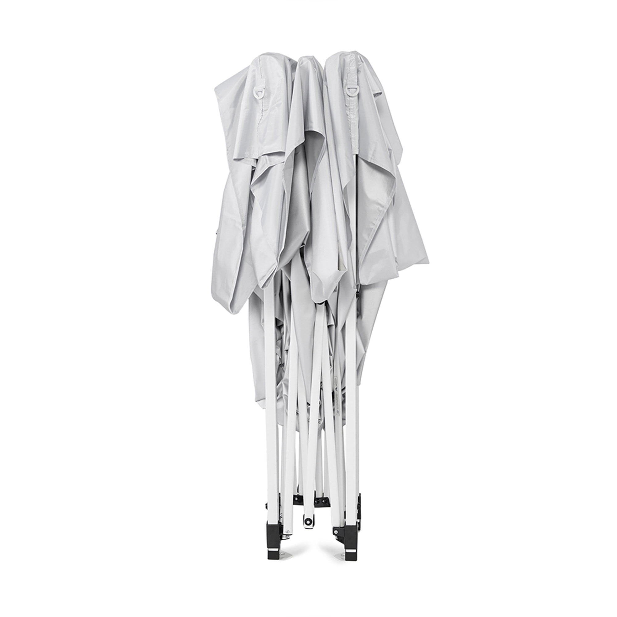 Steel frame with cathedral style roof for maximum headroom Angled leg design, provides 81 square feet of shade Top provides 99% UV protection from the sun’s harmful rays Wheeled bag for easy transport Includes: frame, top, stake kit and roller bag White, powder coated steel frame White top color10′ x 10′