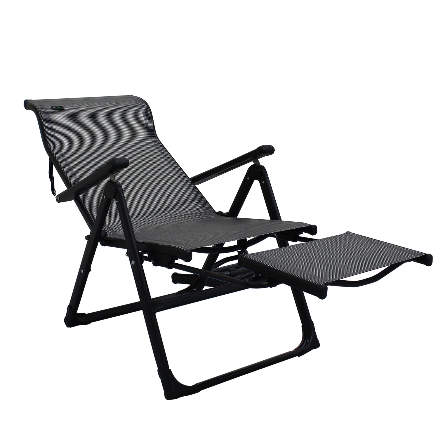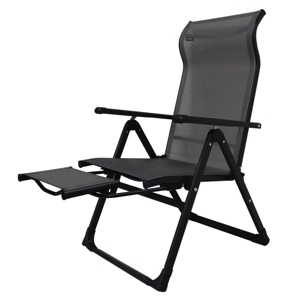 Caravan Sports Ergo+ Patio Folding Chair Gray, Flip Out Footrest, 300 LBS Weight Capacity, 7 Recline Positions