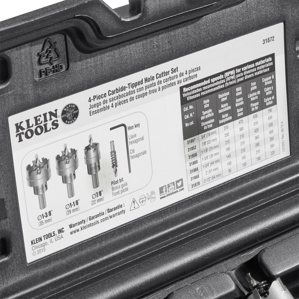 This 4-piece Carbide-Tipped Hole Cutter kit cuts quick, precise holes in a variety of materials. Set includes three commonly used sizes plus an extra pilot bit. Integrated flange prevents the operator from drilling beyond the sheet metal. Split point pilot drill bit prevents bit walking.