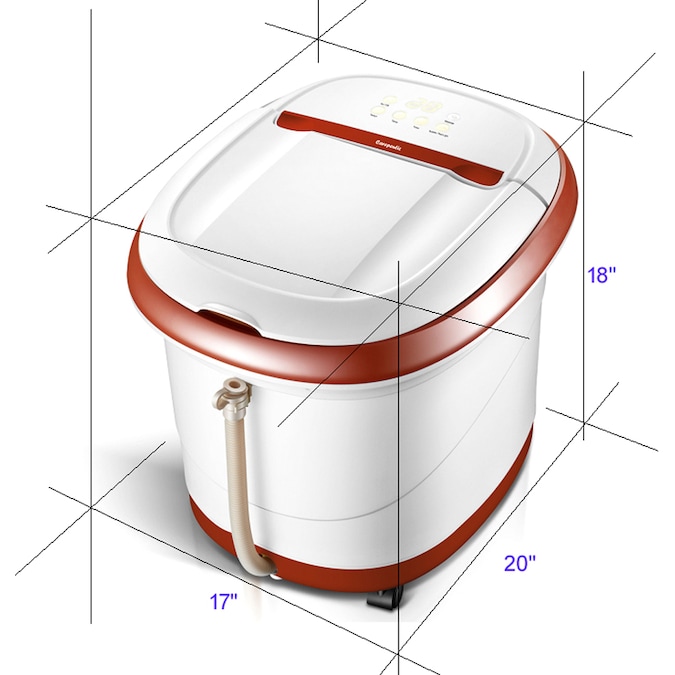 Treat your feet with this undeniable luxury comfort from aquatic therapy! Utilizing the essential benefits of warm water exercise and hypothermia healing rehabilitation, this water-jet foot spa massager makes hot-tub spa a natural and effective way to ease your foot pain and refresh meridians of lower body with its steaming air bubble water. Its advanced touch screen panel with water-proof and LED back light makes finger-tip control easier than ever. With its four motorized massage rollers and sixteen raised up rotating nodes located inside the calf-deep water container, when the water jet surfing system is activated, it gives you hot-steam rolling massage on sole and effectively melts away your calf and foot muscle stress while you are enjoying the warm water soaking. Features with three different rolling massage modes, air bubble and red light therapy; it stimulates blood flow to stiff muscles and frozen joints and boosts circulation to bring oxygen to the tissues to soothe sore muscles on legs and feet. Equipped with advanced water temperature automatic balancing system, its smart thermal control device will be activated automatically to turn on or off the heating function to keep water warm. Two powerful water jets circulate water with moist hot air bubbles, which helps stimulate foot reflex zones and relieve your foot tension with motorized, heated water rolling massage. Its pull handle and mobile casters ensure your flexibility when moving around inside house for storage or transport. You can put bath salt or tea bag into its built-in herbal bag container. Its extra large water container fits foot with any size.