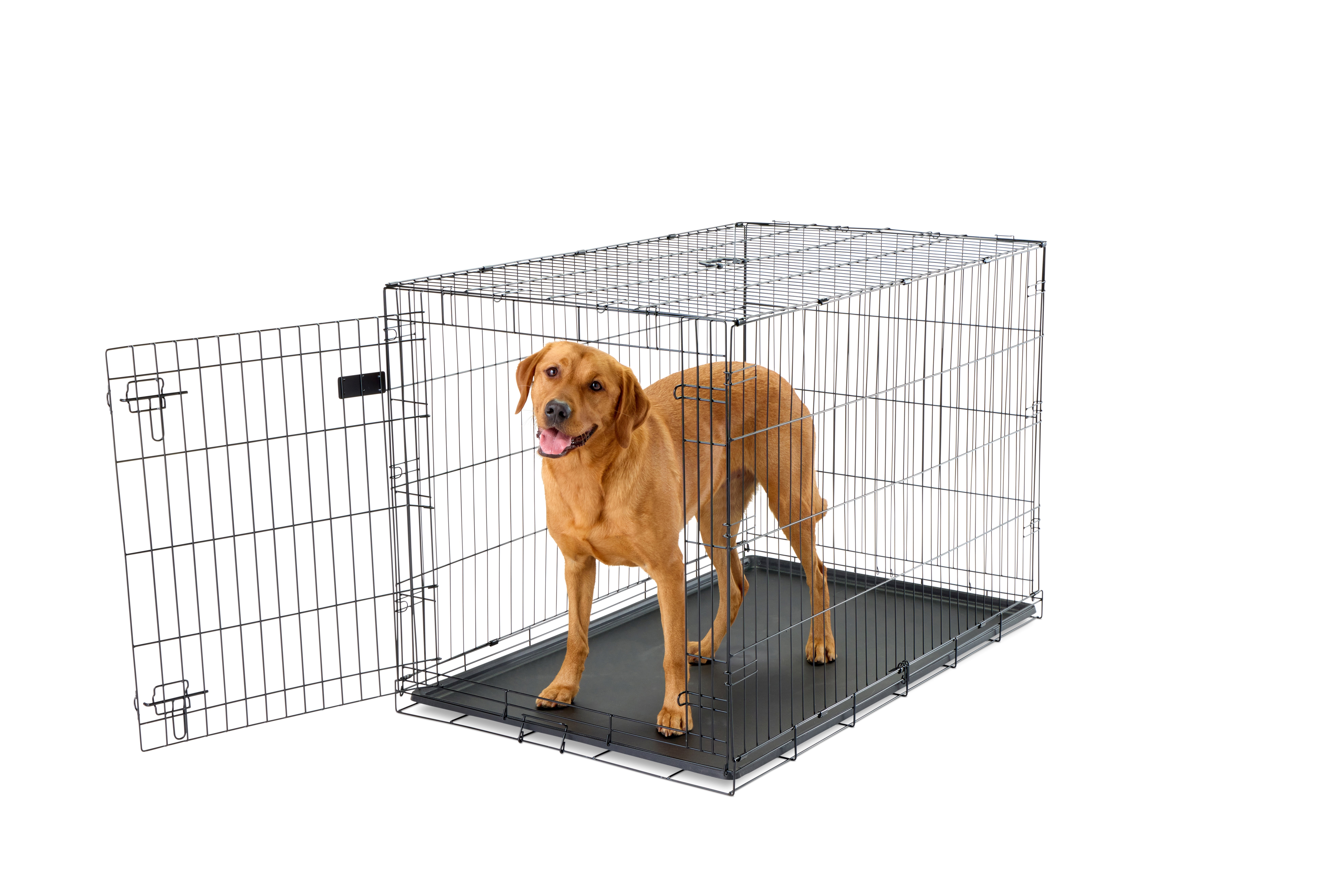 DIMENSIONS: 48” L x 30” W x 32.5” H SECURE ALL STEEL: Single door design with secure multi point locking system for your pet’s safety REMOVABLE PAN AND WASHABLE: Includes a black removable and washable pan FOLDABLE AND TRAVEL: Foldable system for portability, storage and car travel. BREEDS: For large to extra large breeds up to 36” long and up to 28” tall, the Extra-Large Dog Crate can be used from the puppy stage all the way through their adult years.