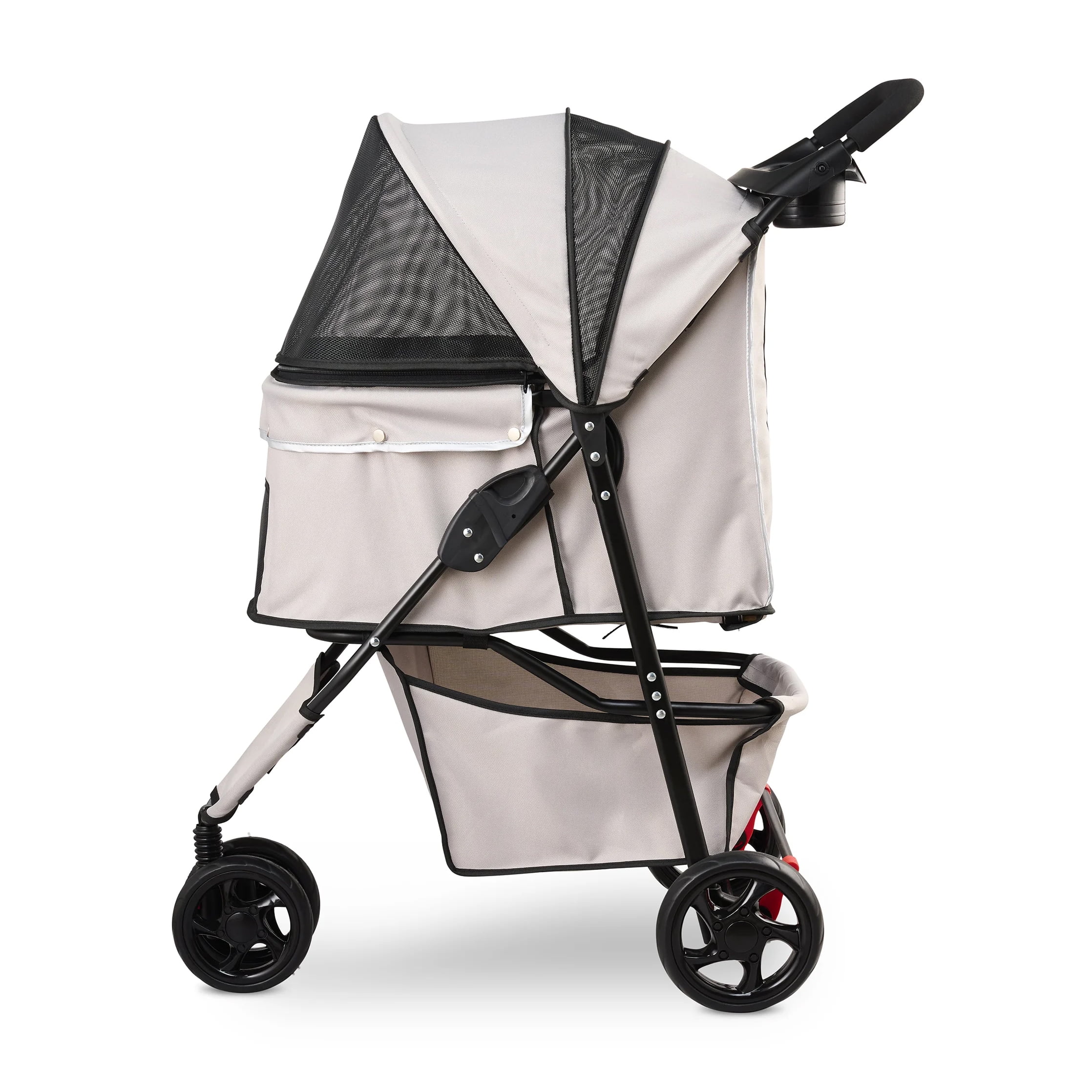 Carlson Portable Pet Stroller with 360 Degree Front Wheel Swivel, Mesh Panels, Umbrella Canopy, Khaki, for Pets Up to 30 lbs