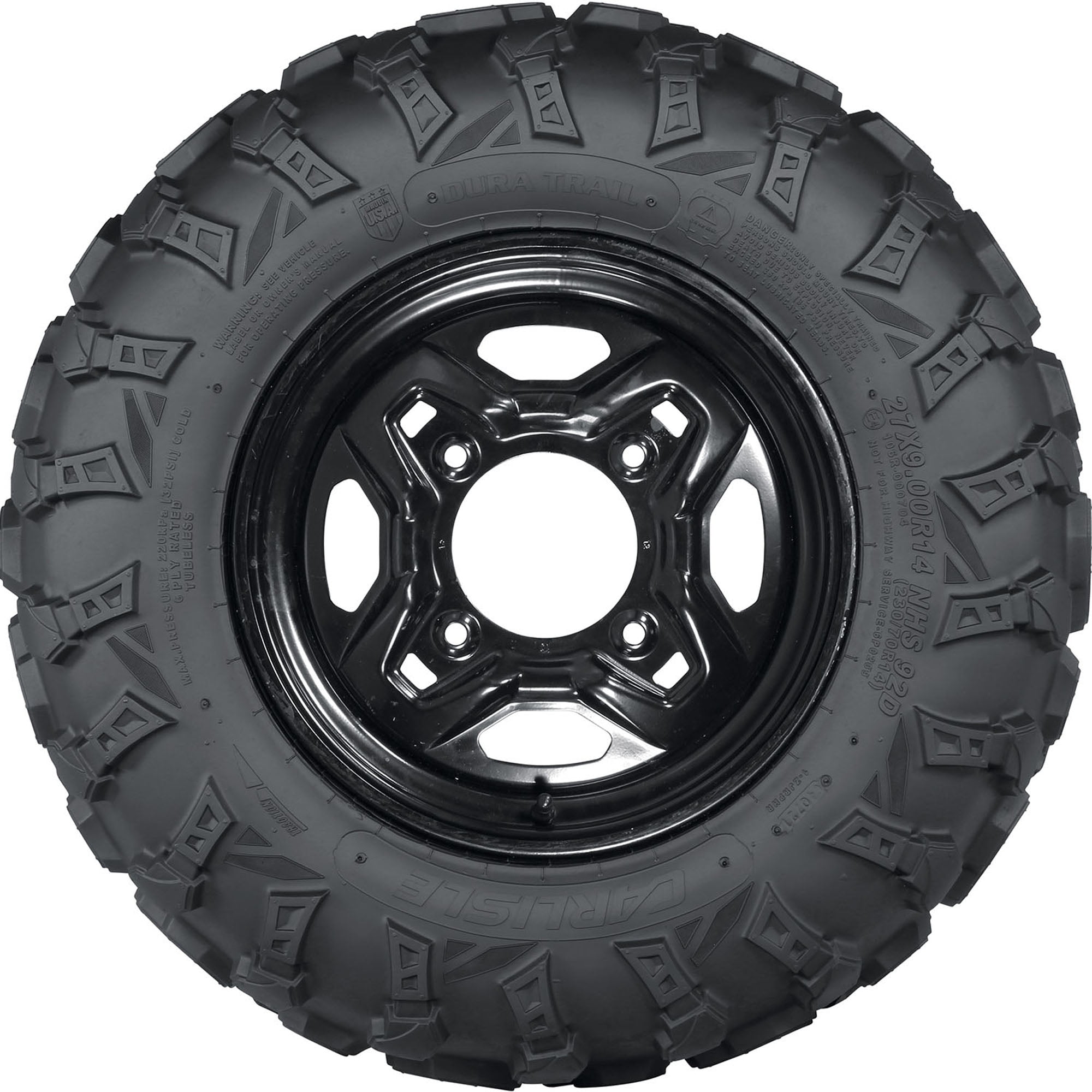 Carlstar Dura Trail 27X11.00R14 D OVERVIEW The Dura Trail from Carlstar is an all-purpose tire that’s ideal for hard pack, desert, rocks, ruts, and intermediate terrains. The Dura Trail’s wrap-around lugs provide improved shoulder protection and the super deep rim guard feature offers wheel lip protection, making the tire ideal for the modern ride.