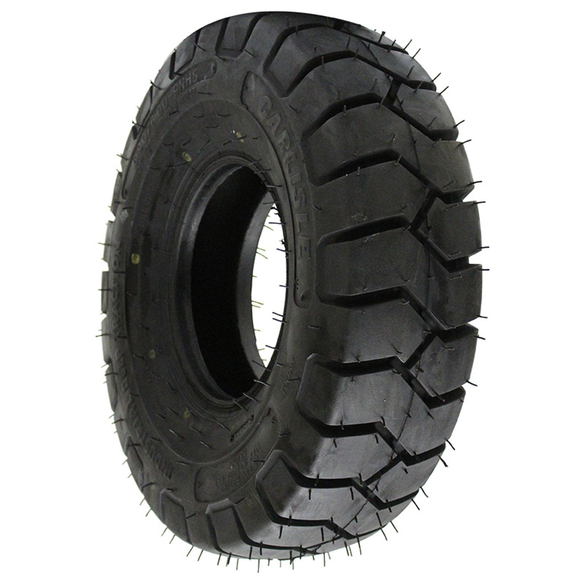 The Industrial Deep Traction from Carlstar/Carlisle is an industrial tire that’s meant for use in forklift applications and features a wide, flat footprint that puts more rubber on the road to boost stability. A heavy-duty construction allows for a higher load carrying capacity while also guarding the tire against damage, and the Industrial Deep Traction’s angled tread blocks force themselves into the ground to increase traction. While intended for forklift applications, the Industrial Deep Traction can also be used in road paving, mining, material handling, and compaction work.