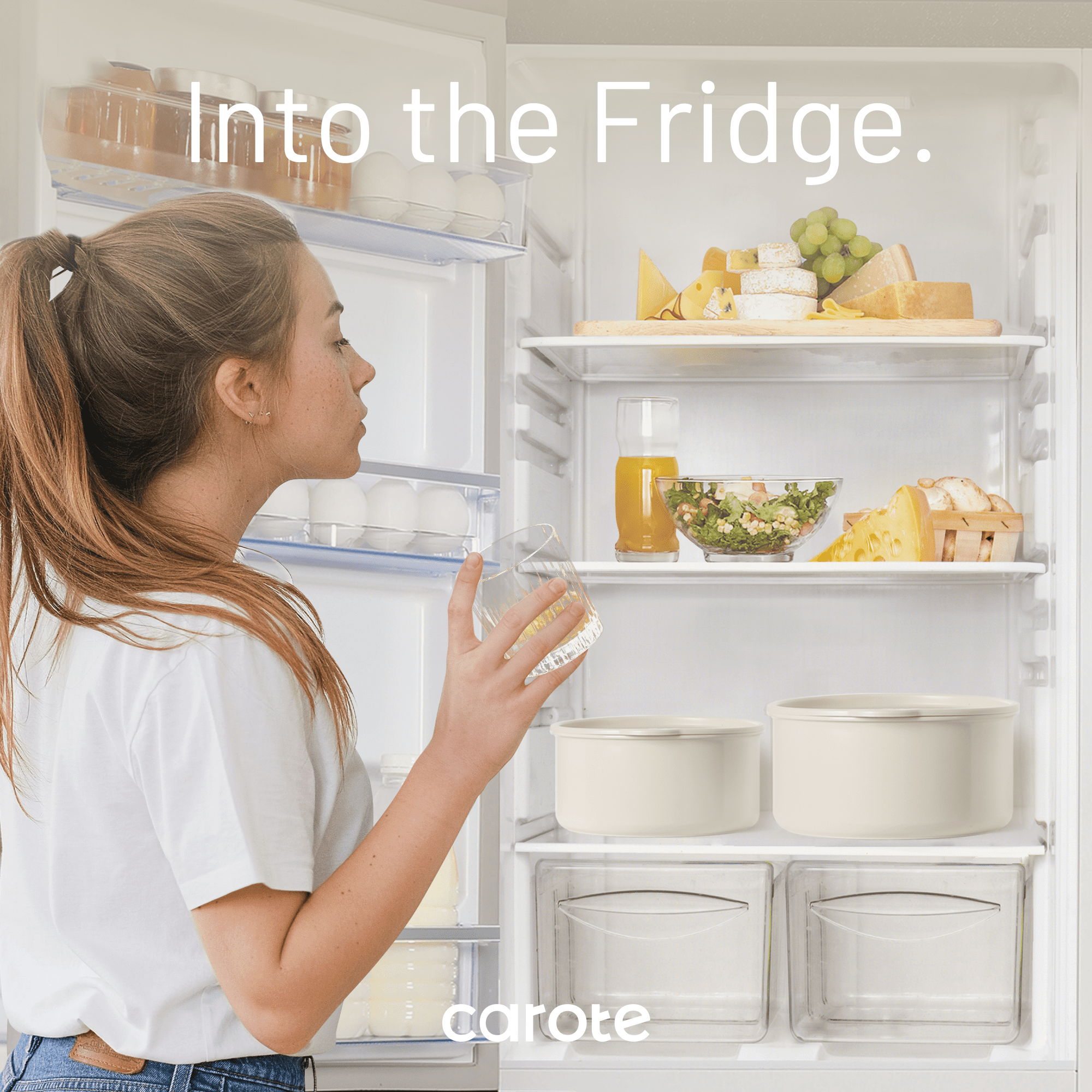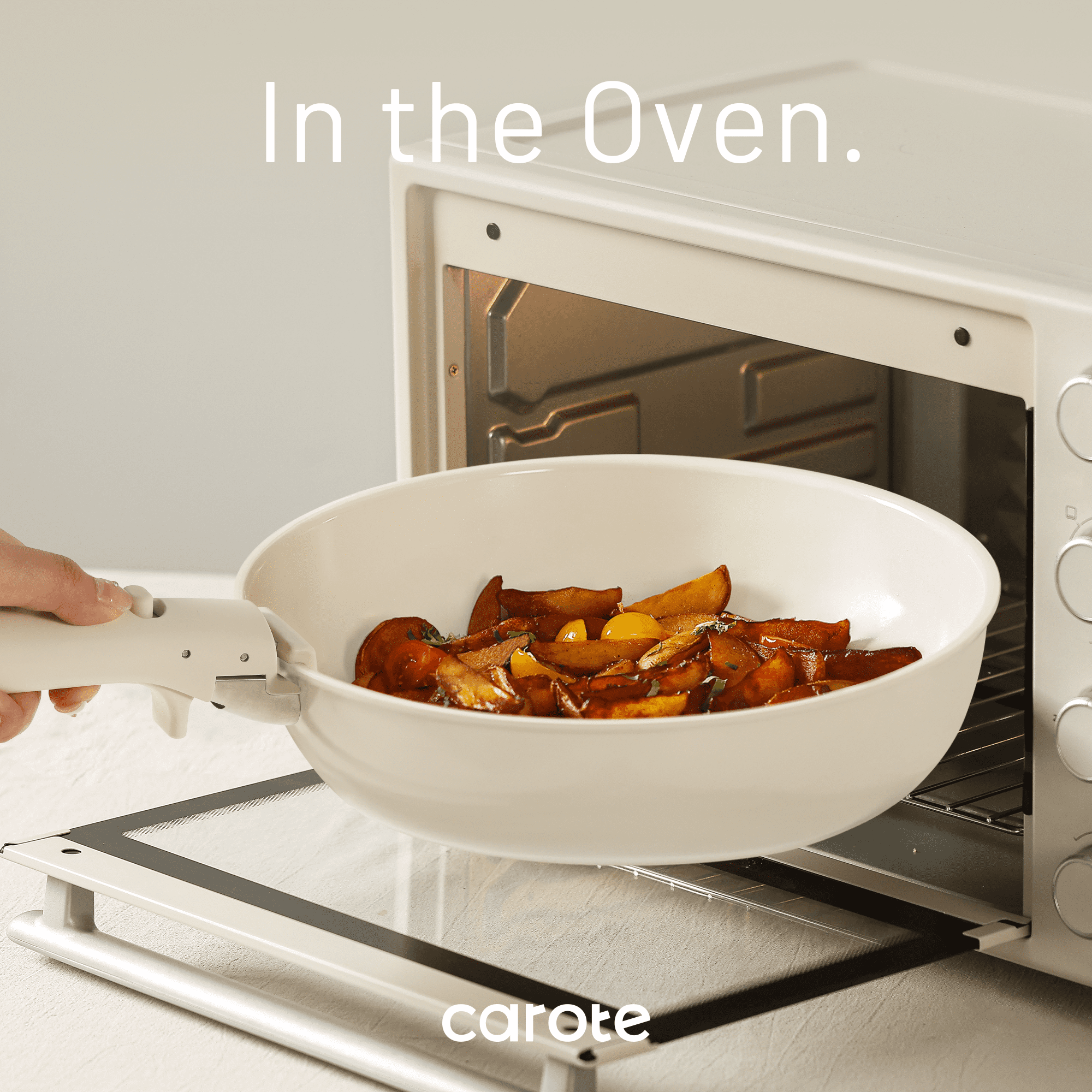 Check out more Carote Cookware Products at The durable, natural ceramic nonstick performance of this cookware set ensures effortless food release and easy cleanup. This ceramic pots and pans set with detachable handle is perfect for everyday use, ideal for everything from quick stir-fries to slow simmering stews. The easy-to-clean surface saves you time and effort after each meal. With the magnetic base, this cookware set is induction ready. Whether you’re an amateur cook or a seasoned chef, our non toxic cookware set is your perfect partner in the kitchen, providing you with the tools to create culinary masterpieces with ease.