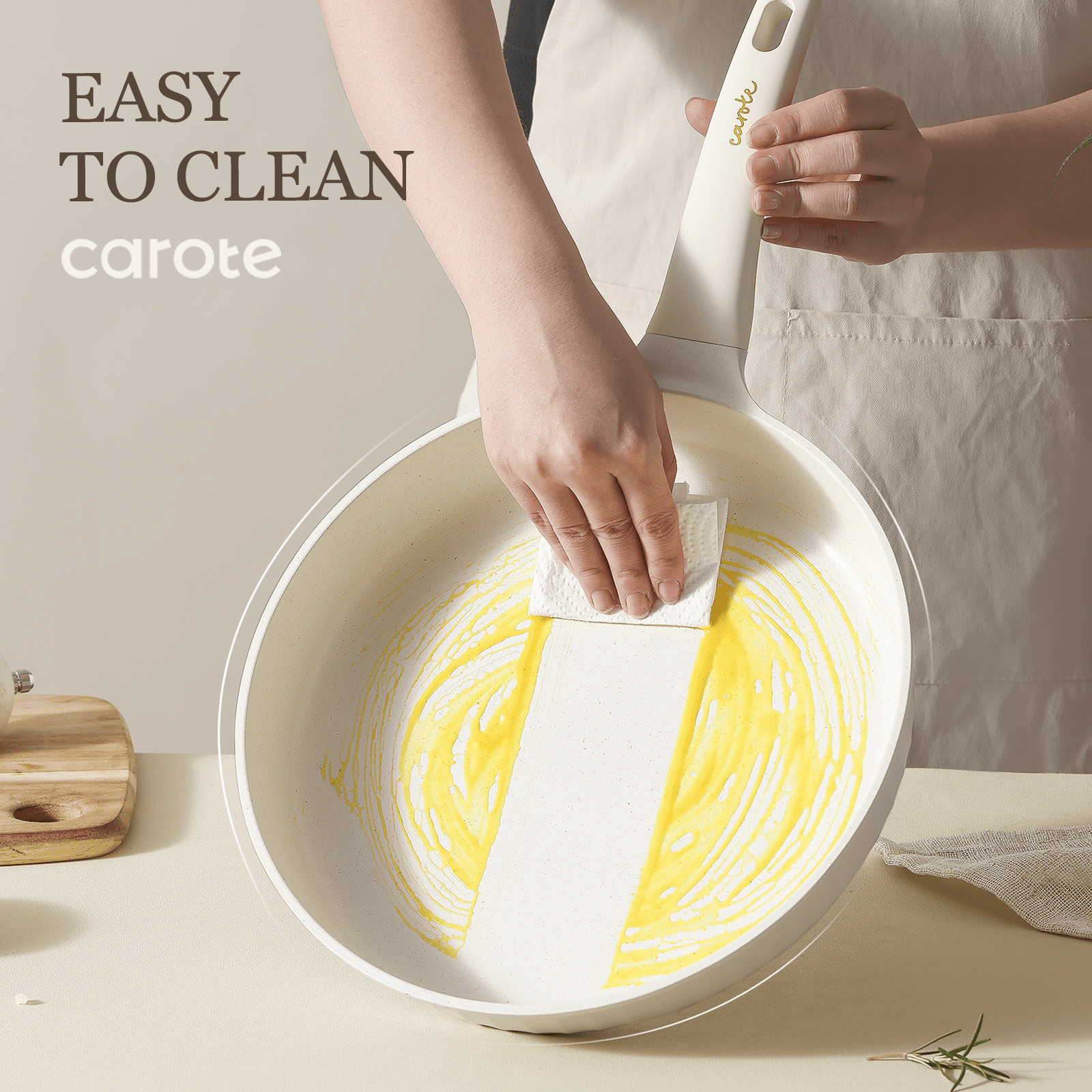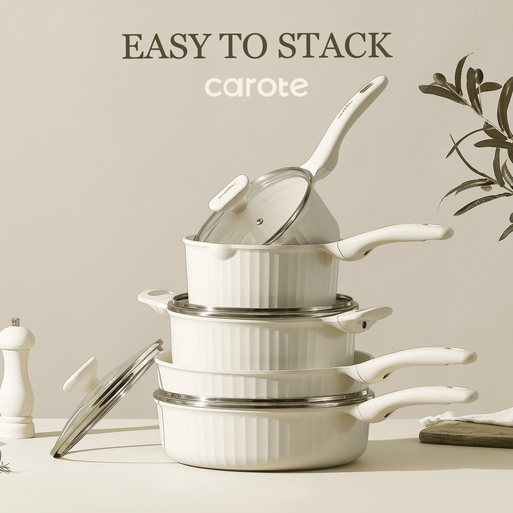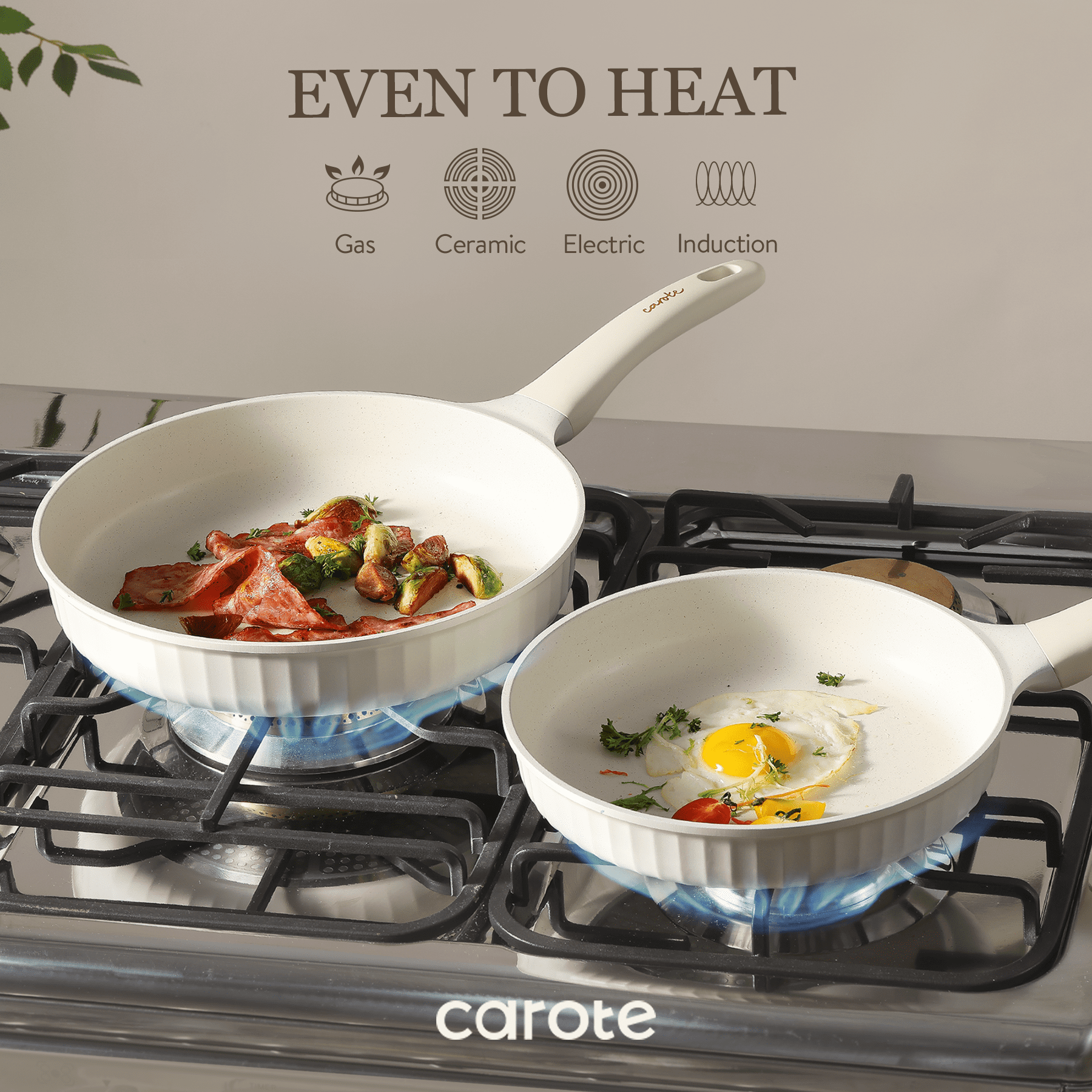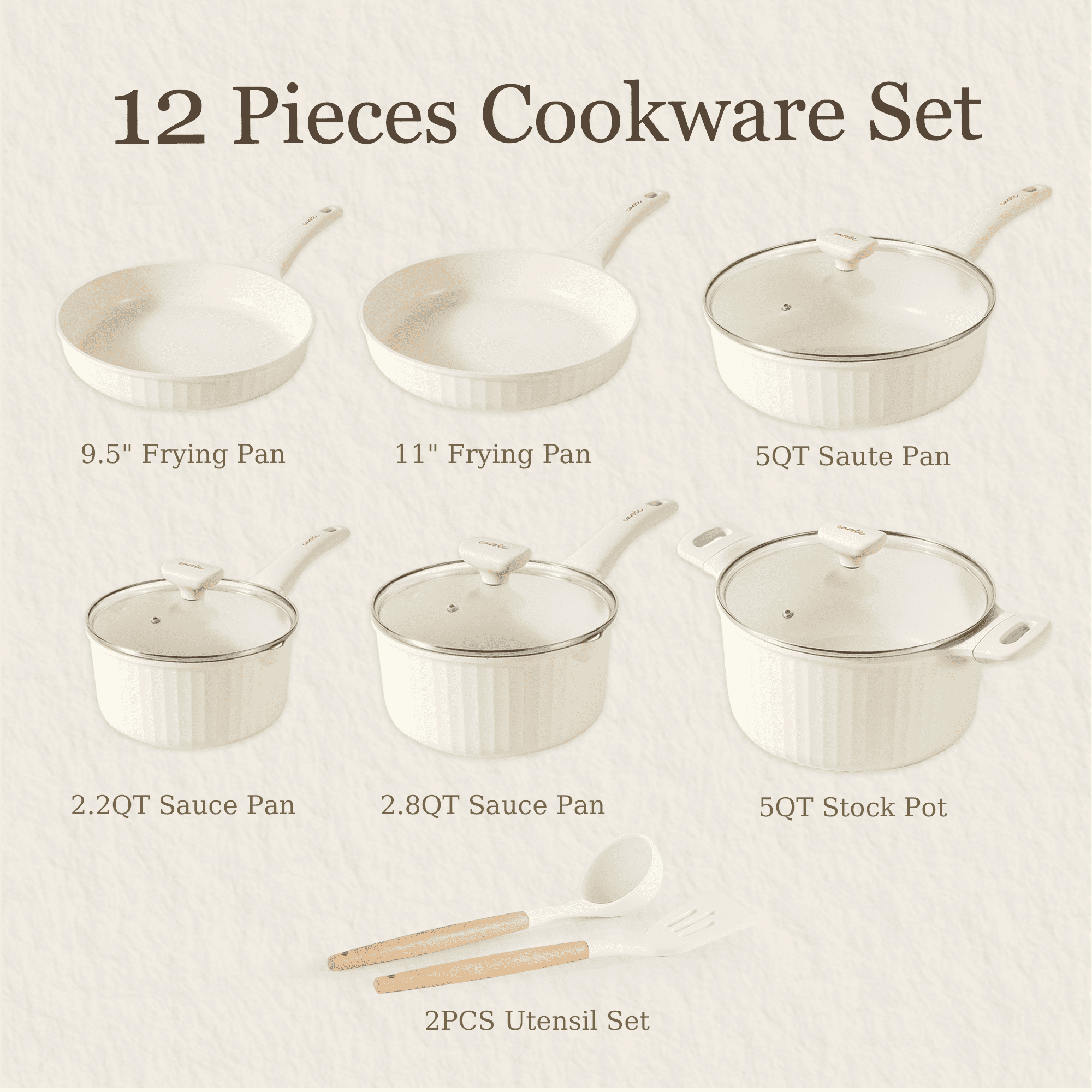 CAROTE 12pcs Pots and Pans Set Non Stick, Kitchen Cookware Set, Induction Kitchen Cookware Sets, Easy to Clean, White and Gold