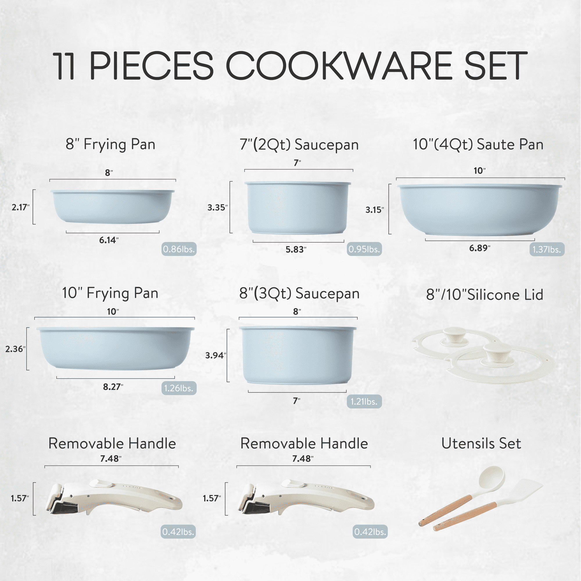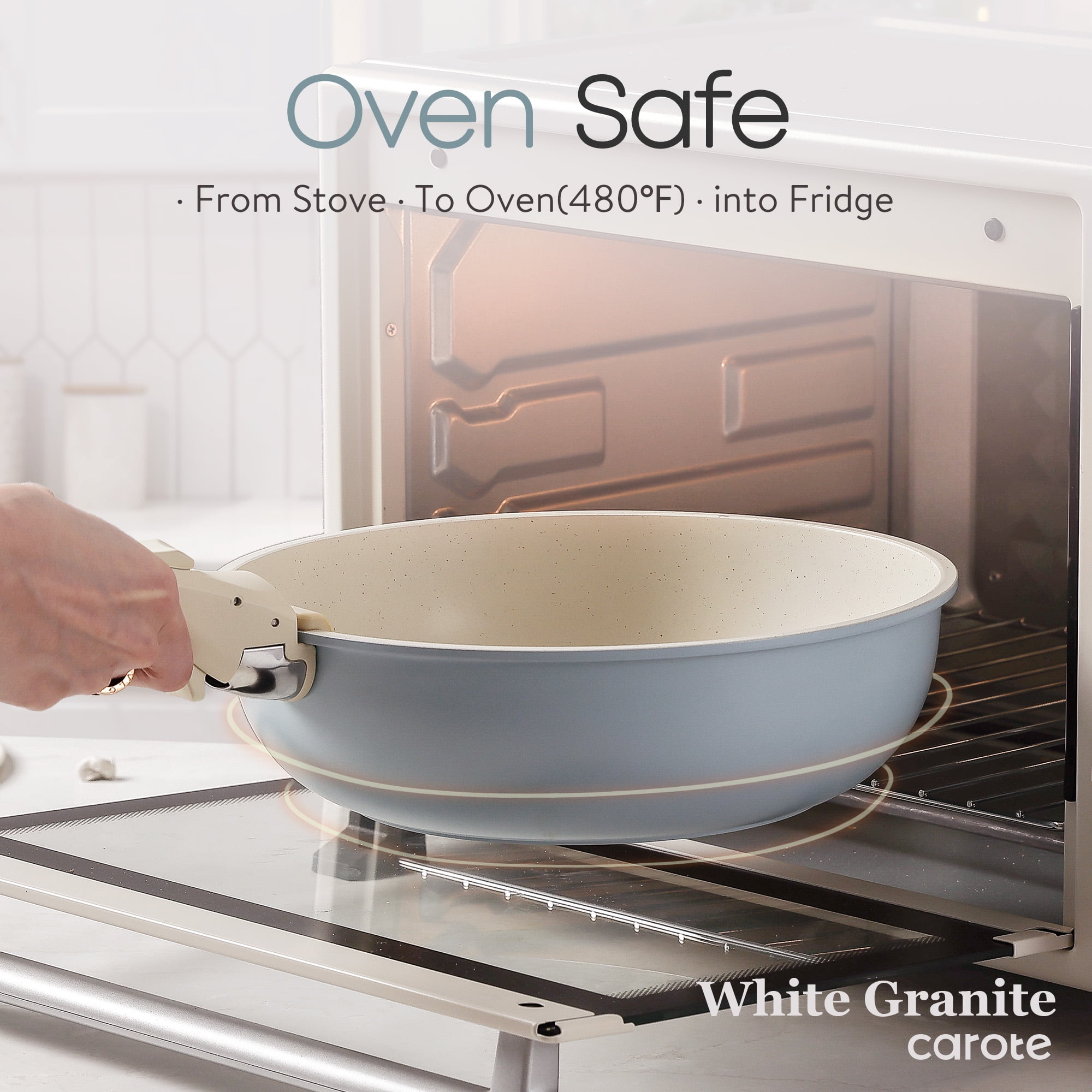 Cleanup with ZERO elbow grease thanks to the nonstick granite. As both a cookware set and a dinnerware set, 1-time cleaning for all. Removable handle for the ultimate versatility? go from ALL kinds of stoves to the oven, to the grill, to the fridge, and onto the table in one click. Balanced convenience-rich features, rapid&even heat transfer, and nonstick performance as the same as other Carote cookware sets. Each CAROTE cookware passes strict multi-inspection process. In case you received defective items caused by delivery, please don’t hesitate to reach out, you will be guaranteed to get 100% refund or a new replacement.