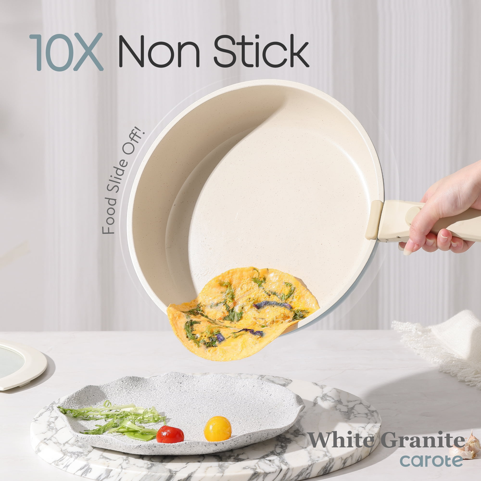 Why Carote? Enjoy the Best Value Carote has been committed to providing you with the best quality at the most fair and honest cost, with 25 years of experience in the non-stick cookware industry. We sell directly from our factory. A typical M2C model allows us to offer the lowest cost with higher quality products. We always adhere to the principle of customer first, pay attention to the customer’s shopping experience, and provide customers with excellent service to ensure that every customer gets the Best Value for Money. Why Carote Cookware? Elevate your kitchen with Carote nonstick cookware set, designed to make cooking easier, cleaner, and more enjoyable. The durable, nonstick performance of this cookware set ensures effortless food release and easy cleanup, while the sturdy construction promotes even heating for perfect results every time. Perfect for everyday use, this set is ideal for everything from quick stir-fries to slow simmering stews. The durable construction offers long-lasting performance, while the easy-to-clean surface saves you time and effort after each meal. With ergonomic handles that stay cool to the touch, you can cook with comfort and control. Whether you’re an amateur cook or a seasoned chef, our nonstick cookware set is your perfect partner in the kitchen, providing you with the tools to create culinary masterpieces with ease.
