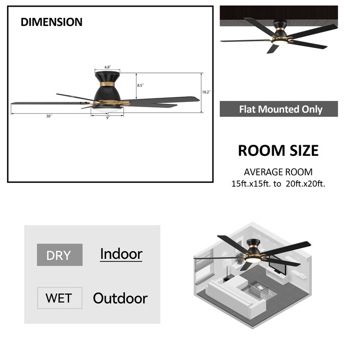 Our Byrness 60″ ceiling fan is designed to keep your space cool, well-lit, and visually appealing. It exudes a soft modern charm, making it an ideal addition to large indoor living areas. With its sleek Black finish, elegant Plywood blades, and Glass shade, this ceiling fan embodies simplicity in its design. It also comes with an integrated 4000K LED cool light, providing both functionality and style. The fan is conveniently equipped with a Remote control, allowing you to easily adjust your preferred fan settings.