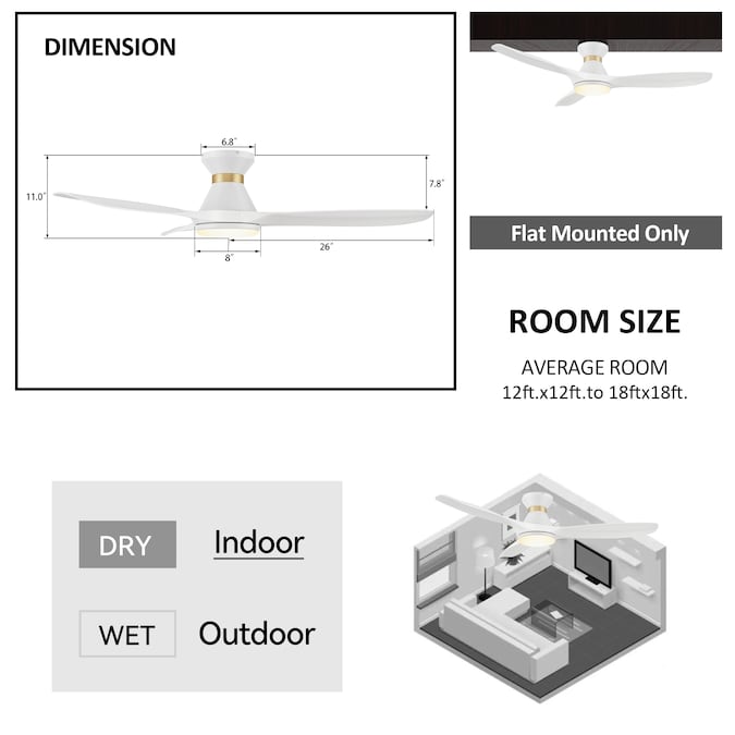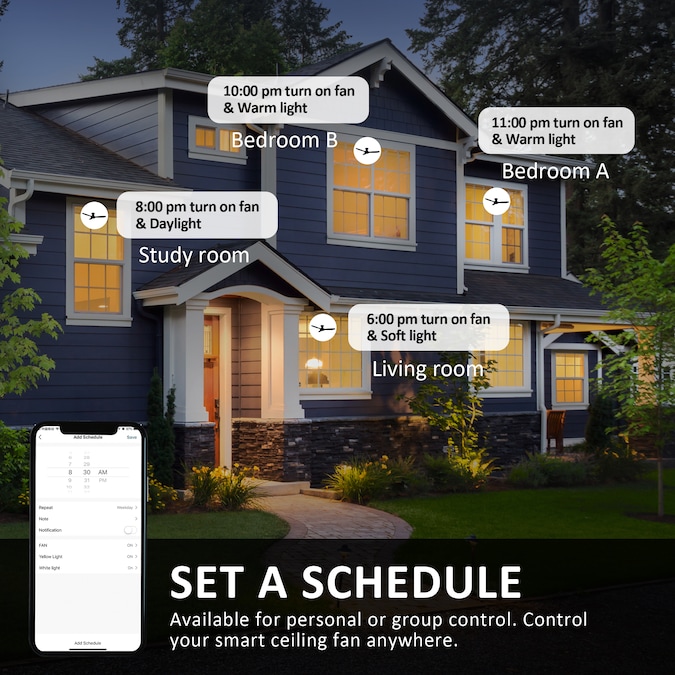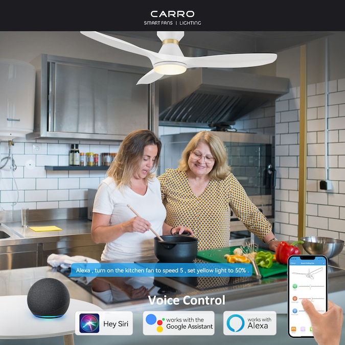 The Kore 52-in smart ceiling fan offers a combination of cooling, illumination, and aesthetics, making it an ideal choice for spacious indoor living areas. With its sleek design and White finish, this Wifi-enabled smart ceiling fan showcases a blend of simplicity and elegance. It incorporates strong ABS blades and has an Integrated 4000K LED cool light, enhancing both functionality and style. The fan provides convenient features such as a Remote control, Wi-Fi apps, Siri Shortcut compatibility, and Voice control technology, making it compatible with Amazon Alexa and Google Home Assistant for effortless fan customization.