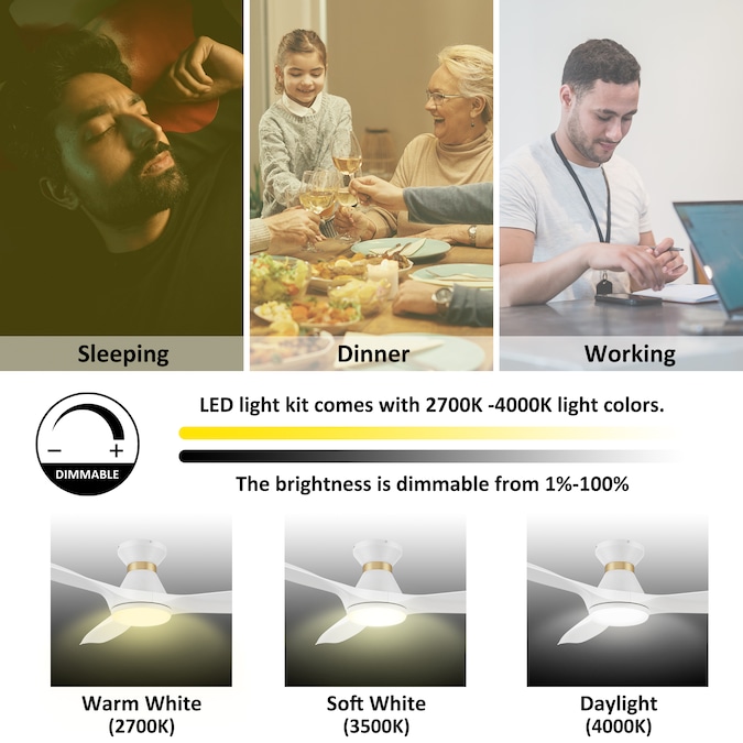 - Fan light kit includes integrated LED lights with warm light and cool light options, reducing energy use and extending lifespan beyond traditional lighting