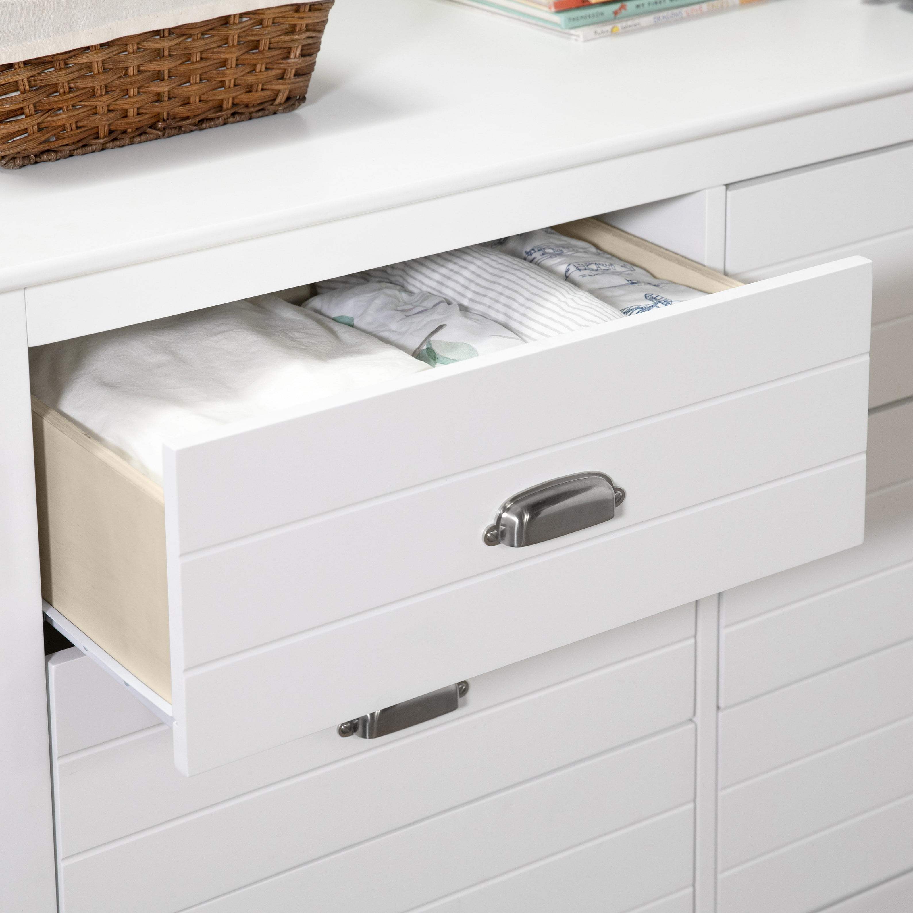 DURABILITY: 6 spacious drawers that can hold all the adorable baby clothes, blanket, and more VERSATILE DESIGN: Changing station now. Big kid dresser later! This dresser is designed so that you can add a changing tray (#M0619) to use as a convenient changing station during the baby years SMOOTH GLIDE: Pre-installed euro glides that make opening the drawers easy even when your hands are full with baby QUALITY MATERIAL: Made of solid sustainable New Zealand pinewood and TSCA compliant engineered wood FOR YOUR BABY’S SAFETY: Say goodbye to toxic chemicals! Finished in a multi-step painting process and lead and phthalate safe