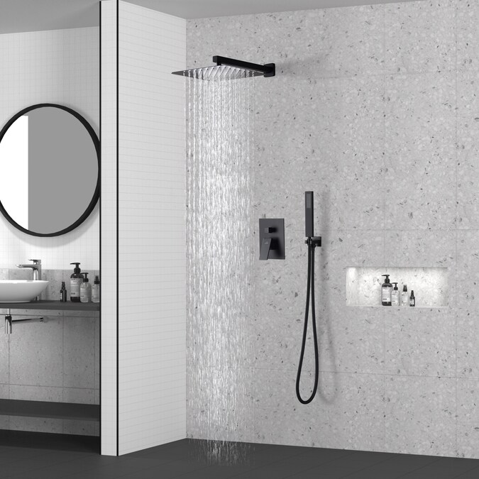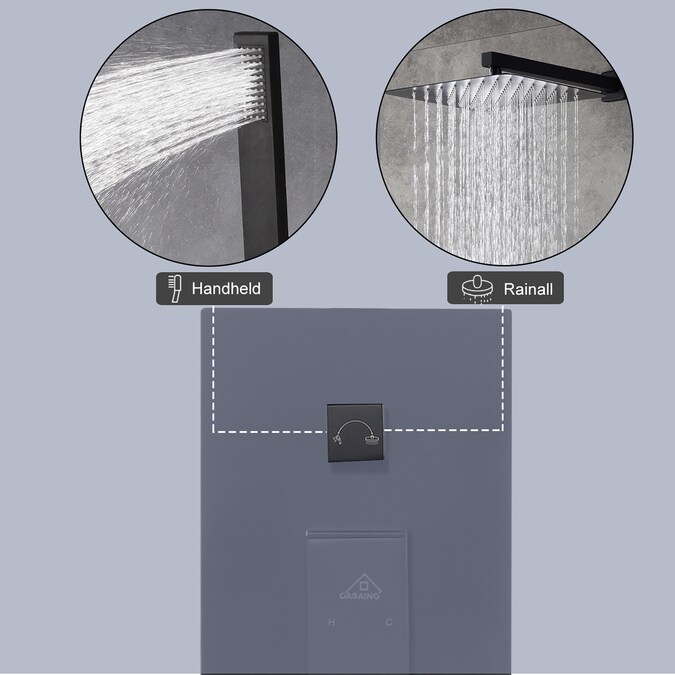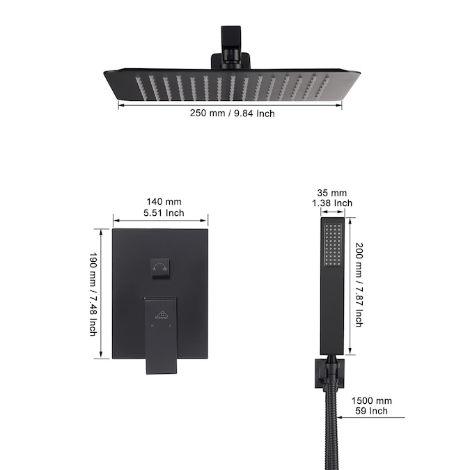 The main body of this matte black single shower rain system is made of brass, and the square stainless-steel shower has a high-level appearance and long-lasting durability. CUPC certified valve, Stainless steel hand shower with 59 in. hose and 15 in. shower arm. The whole set of shower system will bring you an advanced shower experience and wash away all-day fatigue.