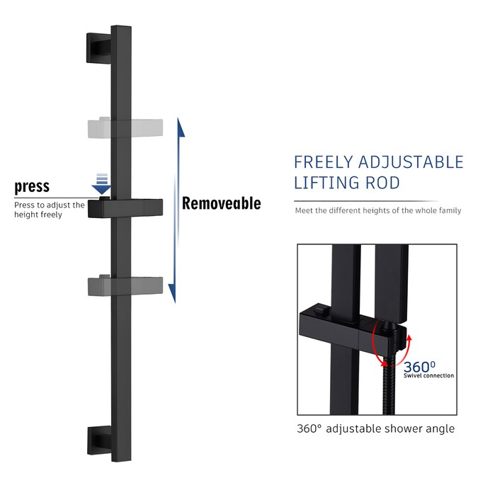This 10-inch black shower system not only has dual shower heads, but also has a slider to adjust the fixed position of the hand shower, which can fix the position of the hand shower as needed. The square top shower head brings a super enjoyable shower experience. The standard American NPT1/2 connector is compatible with most existing shower system plumbing, so you don’t have to worry about installation issues.