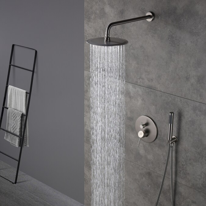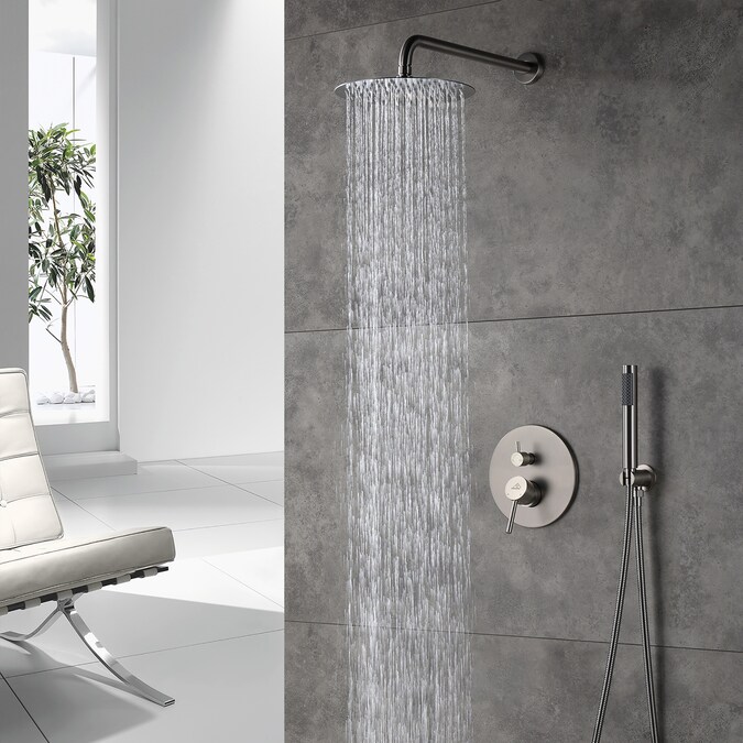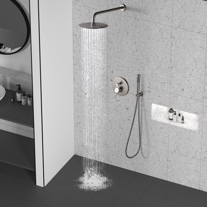 Elevate your shower experience with this wall-mounted circular single-spray rain shower system, expertly crafted from durable brass. Featuring a sleek round stainless steel shower head and a gracefully curved 15-inch shower arm, this system exudes both style and functionality. Certified by CUPC, the valve ensures reliability and safety, while the stainless steel hand shower, equipped with a 59-inch hose, offers added versatility. Immerse yourself in a rejuvenating shower experience that washes away the fatigue of the day, courtesy of this premium shower system.