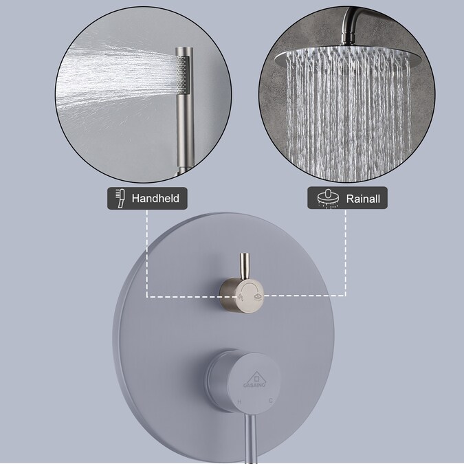 CASAINC Brush Nickel 10-in Waterfall Built-In Shower Faucet System with 2-way Diverter (Pressure-balanced Valve Included)