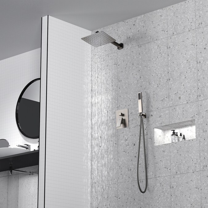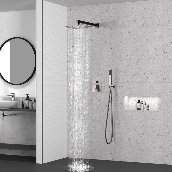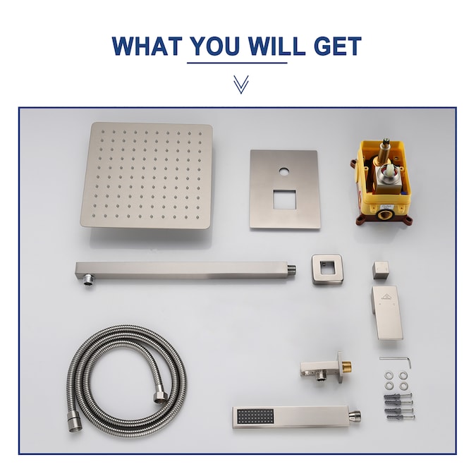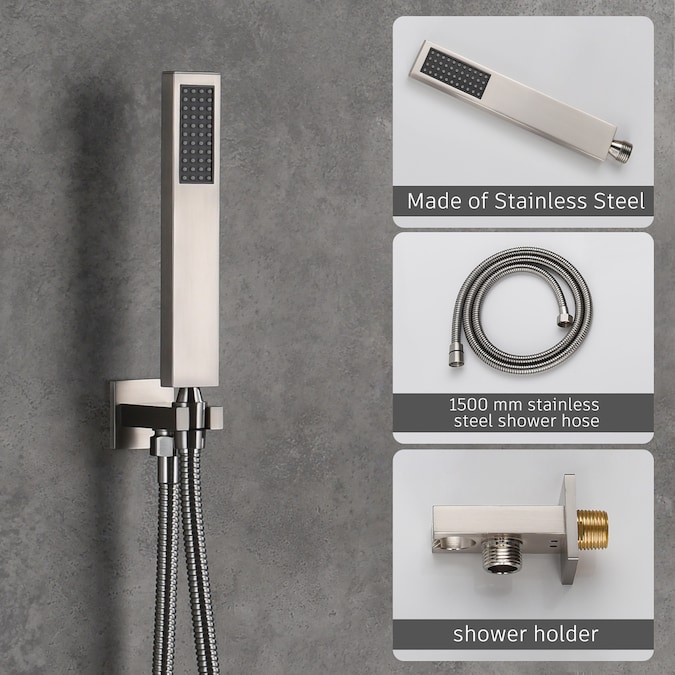 The main body of this brushed nickel single shower rain system is made of brass, and the square stainless steel shower has a high-level appearance and long-lasting durability. CUPC certified valve ,Stainless steel hand shower with 59-inch hose and 15-inch shower arm. The whole set of shower system will bring you an advanced shower experience and wash away all-day fatigue.