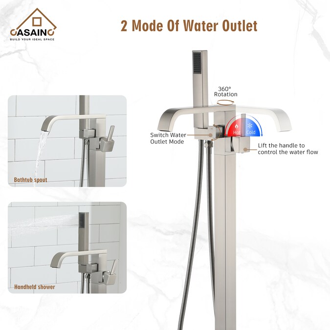 - Dual function, the waterfall spout fills the bathtub quickly, while the hand shower provides flexibility for targeted cleaning