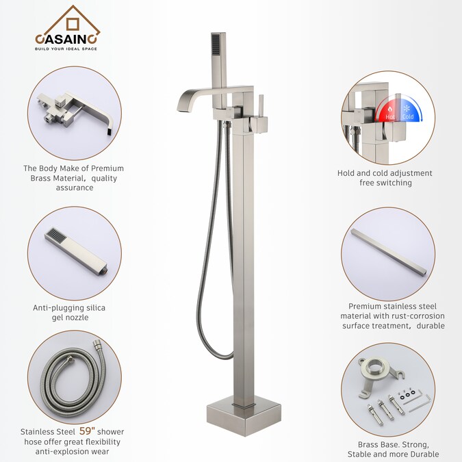 This freestanding bathtub shower will instantly make your bathroom elegant with its sleek look and modern design. It comes with a hand-held showerhead that gives you more freedom and flexibility in your bath. The design of the pressure balance valve prevents overheating scalding or cold water shock caused by hot and cold water evacuation, giving you a more comfortable and safe bathing time.