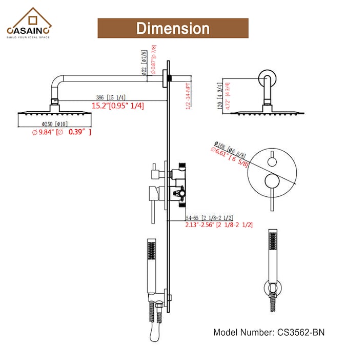 - Handheld Shower Head Diameter (Inches): 10