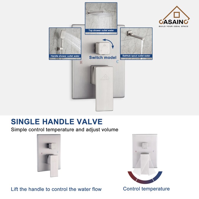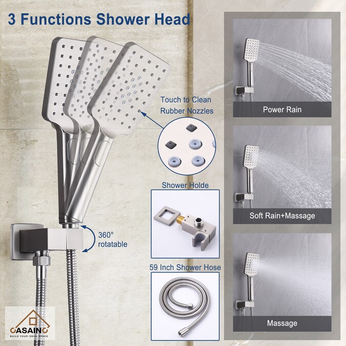 This CASAINC Luxury 3 in 1 Shower System with Classical Looking: The brushed nickel finish and classical look shower system complements the decoration of your new bathroom. Dual-function shower faucet is in right now because this gives you the convenience of having one rainfall bath and one handheld sprayer which you could use for focusing on bathing your body. Don’t hesitate, place an order quickly!